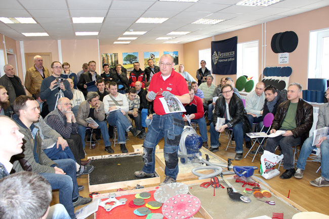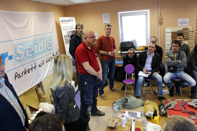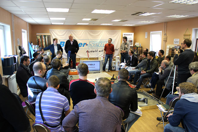 На практическом семинаре присутствовали около 55 мастеров-паркетчиков и представителей паркетных фирм.