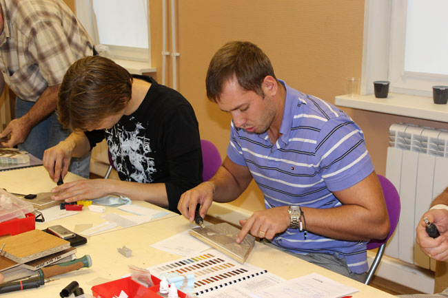 9 и 10 октября в сотрудничестве со швейцарской компанией Novoryt в учебном центре ВЕРНИСАЖА в Санкт-Петербурге прошло обучение по работе с реставрационными материалами. В первый день занимались 2 группы «новичков» в реставрационном деле, а во второй - уже прошедшие на вторую ступень, то есть те, кто были на обучении первой ступени в ВЕРНИСАЖЕ в марте 2014 года.