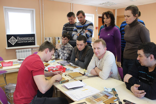 Окончательная цель наших практикумов - это воспитание профессиональных техников-реставраторов паркета и вообще любых деревянных поверхностей.