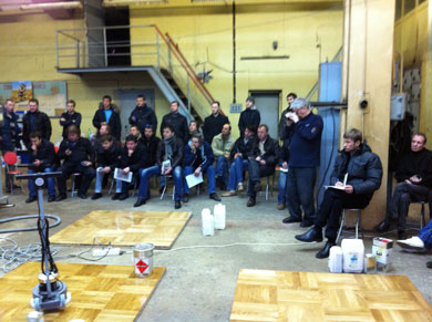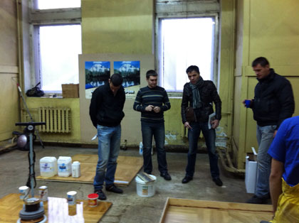 23 ноября 2011 г. паркетная компания «Вернисаж» провела практический семинар для мастеров паркетчиков на тему «Глянцевые покрытия паркетных полов».