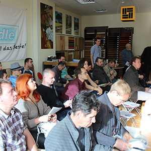 01 октября 2014 года компания «ВЕРНИСАЖ» провела очередной семинар в Москве для паркетчиков-профессионалов и представителей паркетных фирм.