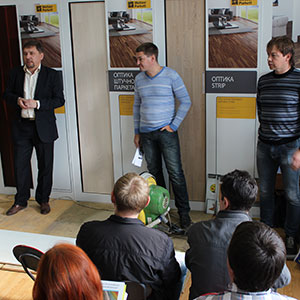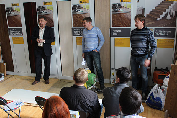 Профессиональные паркетчики и представители паркетных фирм Москвы, уже не первый раз посещают познавательные семинары компании «ВЕРНИСАЖ».