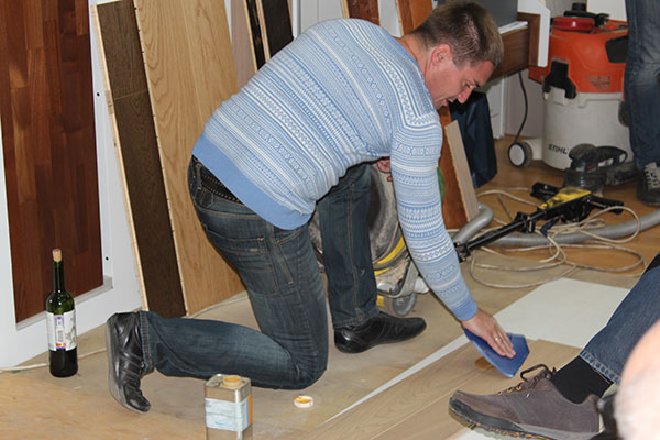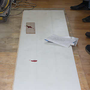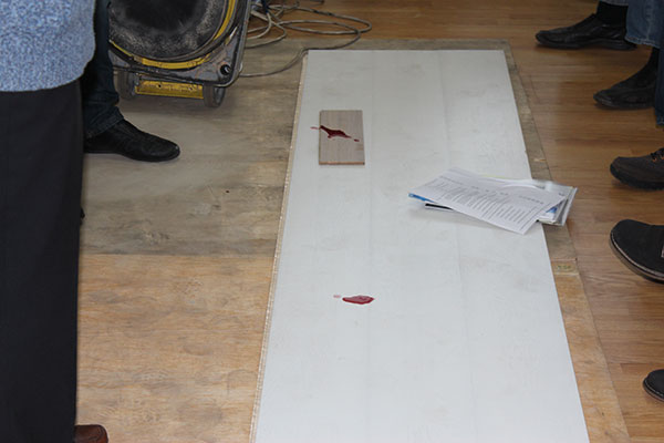 Первым тестом был «тест с красным вином». В красном вине высокое содержание танинов, и если покрытие паркетной доски не сплошное или пористое, то на доске останется след.