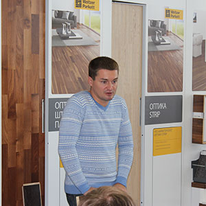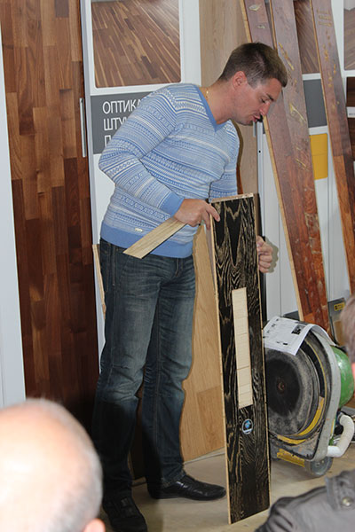 Опытный теоретик, признанный эксперт в мире паркетных работ со стажем более 20 лет, неоспоримый авторитет среди профессионалов паркетного дела Москвы и Санкт-Петербурга Михаил Сорочкин выступил с докладом о том, какие цели ставили производители в начале истории создания замковой паркетной доски.