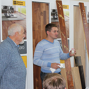 После полутора часов семинара доска Weitzer Parkett с успехом выдержала «тест с вином».