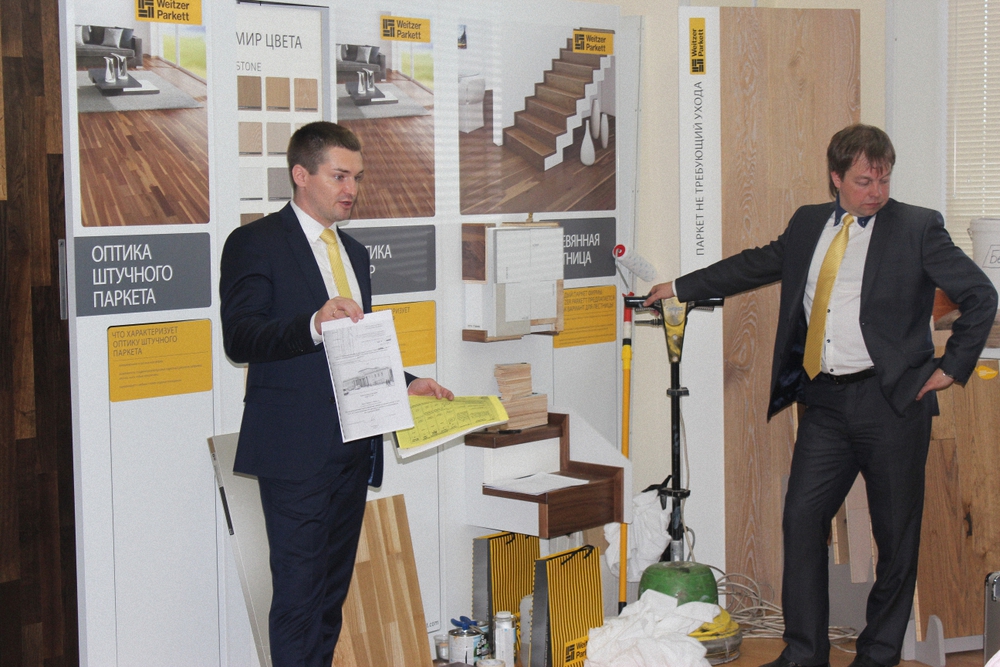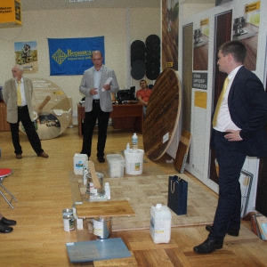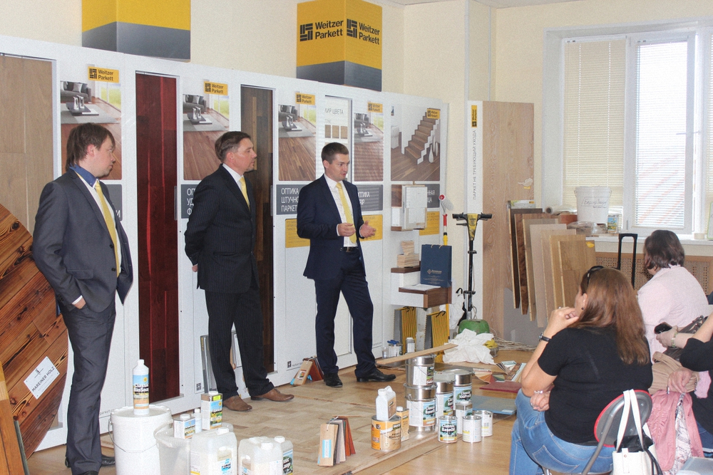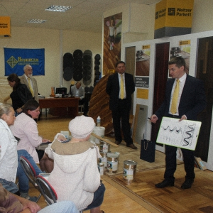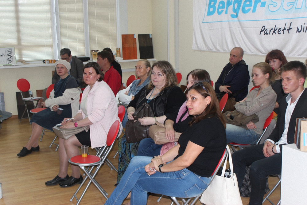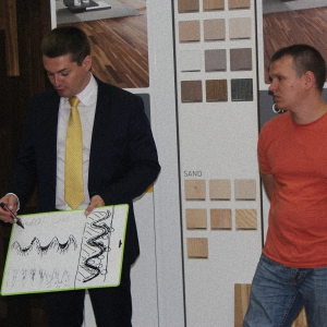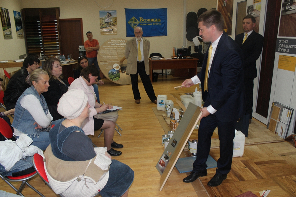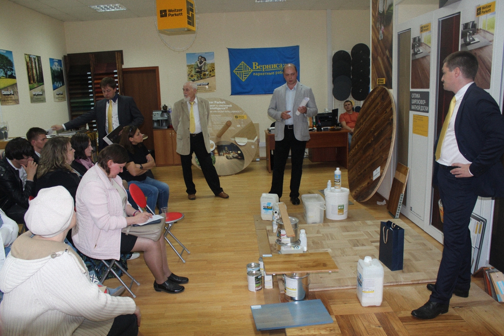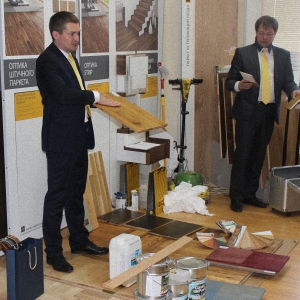 Со вступительным словом обратились к собравшимся руководитель московского отделения компании «ВЕРНИСАЖ», представитель «Berger-Seidle» в России Рябошлык Максим и генеральный директор компании «ВЕРНИСАЖ» - Платонов Александр. Затем выступил Михаил Сорочкин признанный эксперт в мире паркетных работ по следующим темам: «Покрытия и их эксплуатационные свойства: Лаки. Масла с воском. Натуральные масла» и «Блеск: От высокого глянца до ультрамата».