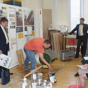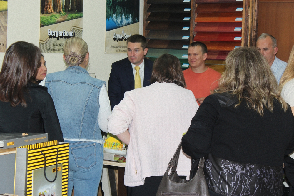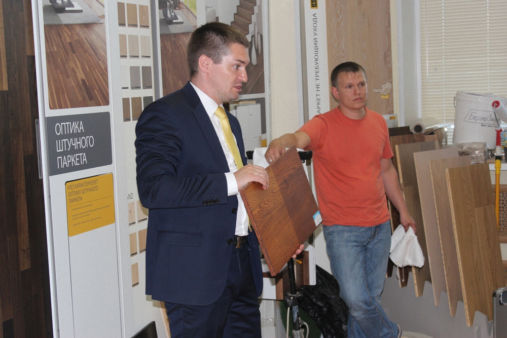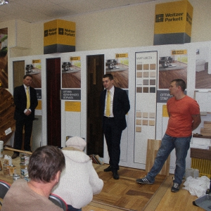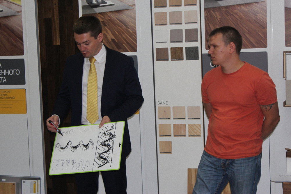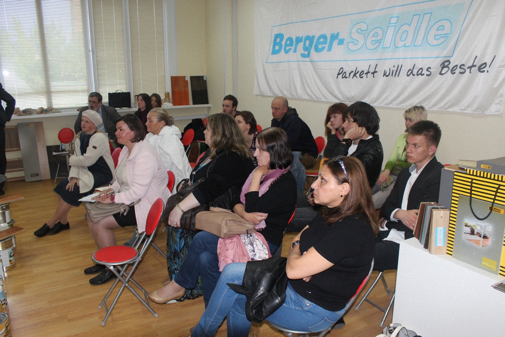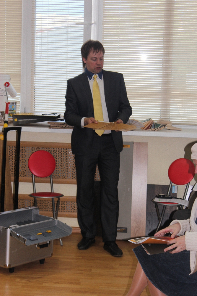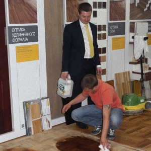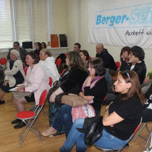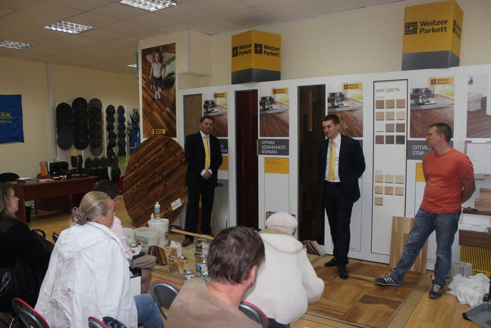 Со вступительным словом обратились к собравшимся руководитель московского отделения компании «ВЕРНИСАЖ», представитель «Berger-Seidle» в России Рябошлык Максим и генеральный директор компании «ВЕРНИСАЖ» - Платонов Александр. Затем выступил Михаил Сорочкин признанный эксперт в мире паркетных работ по следующим темам: «Покрытия и их эксплуатационные свойства: Лаки. Масла с воском. Натуральные масла» и «Блеск: От высокого глянца до ультрамата».