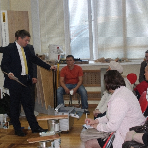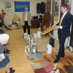Далее доклад о «Покрытиях и их эксплуатационных свойствах: Лаки. Масла с воском. Натуральные масла.» Выступал исполнительный директор компании «ВЕРНИСАЖ» - Хлебников Леонид.
