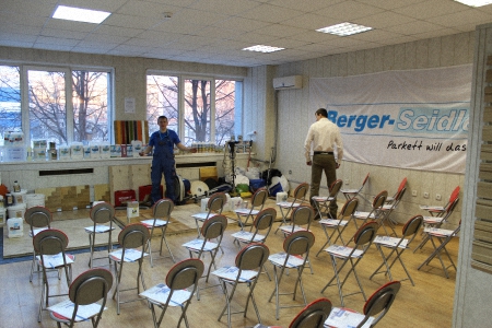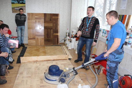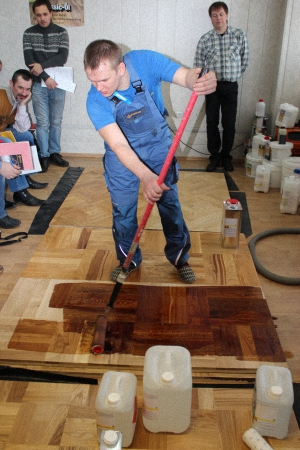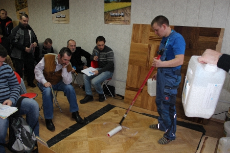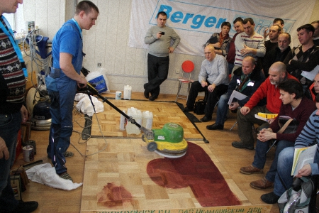 Затем с обзорным докладом на тему: «Зачем нужны грунтовочные лаки?» и кратко по каждому продукту из линейки Berger выступил Сорочкин Михаил - опытный теоретик и практик, признанный эксперт в мире паркетных работ, теперь он является нашим штатным специалистом.