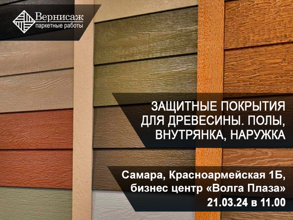 Уважаемые партнеры, специалисты паркетного бизнеса, мастера-укладчики и реставраторы, продавцы, все кто связан с паркетными работами и защитными покрытиями для древесины! Компания «Вернисаж» приглашает вас на практический семинар «Защитные покрытия для древесины. Полы, внутрянка, наружка» в Самаре.