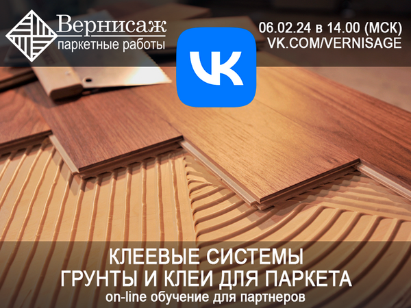 Уважаемые коллеги и партнеры! Компания «Вернисаж» приглашает вас посетить вебинар «Клеевые системы. Грунты и клеи для паркета».