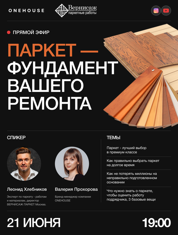 Если вы хотите узнать все о паркете, заходите к нам на эфир и задавайте вопросы.