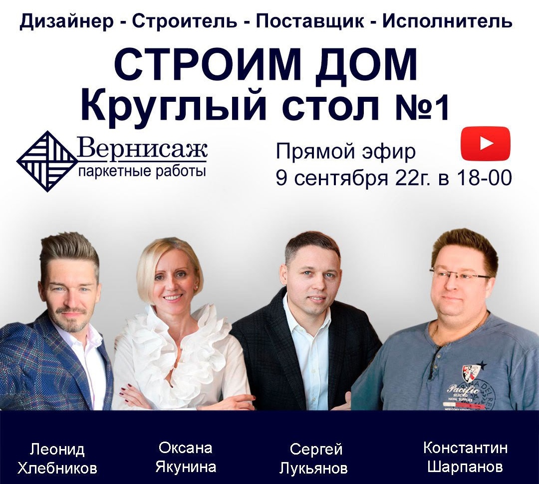 Компания «Вернисаж» продолжает серию круглых столов «Дизайнер - Строитель - Поставщик - Исполнитель» с приглашенными экспертами в прямом эфире.