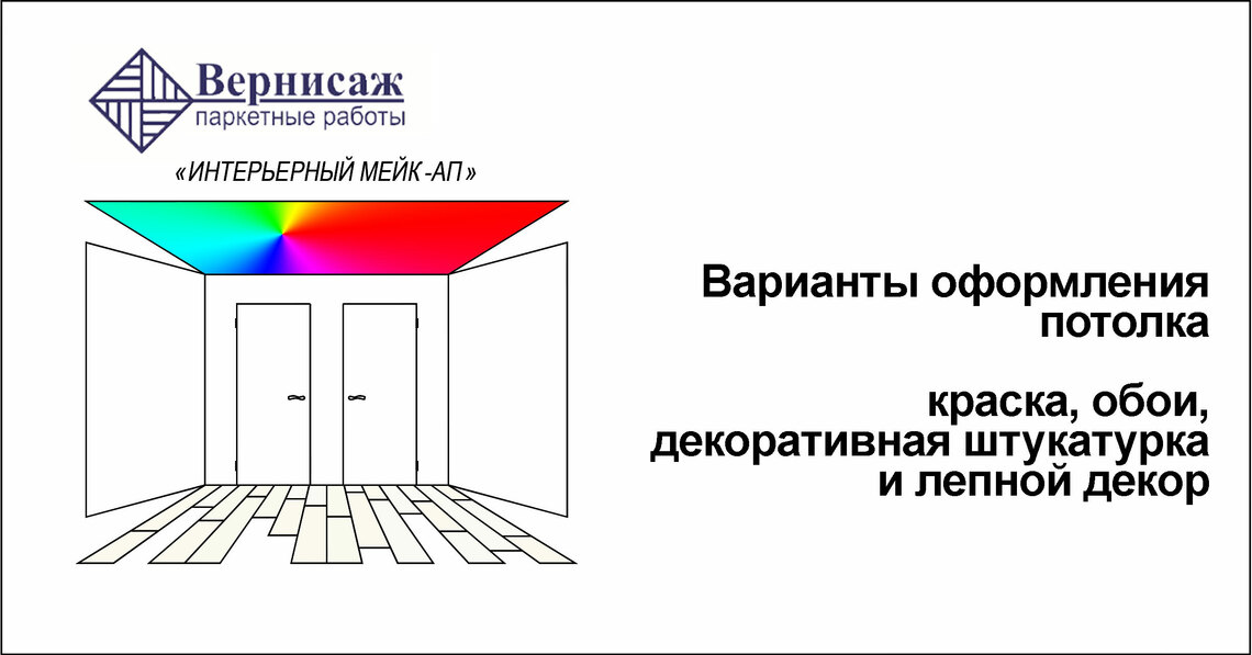 - Варианты оформления потолка (краска, обои и лепной декор)