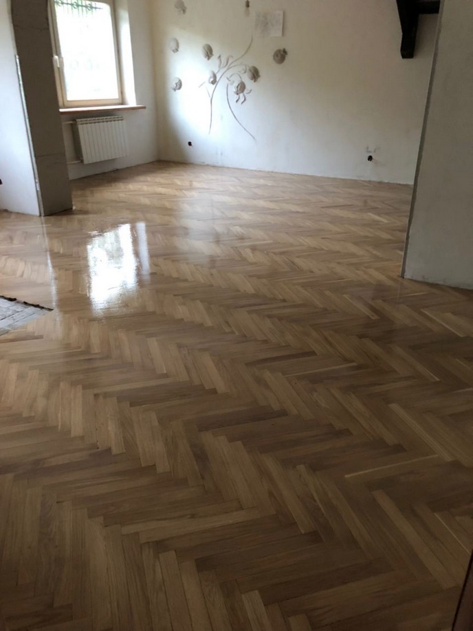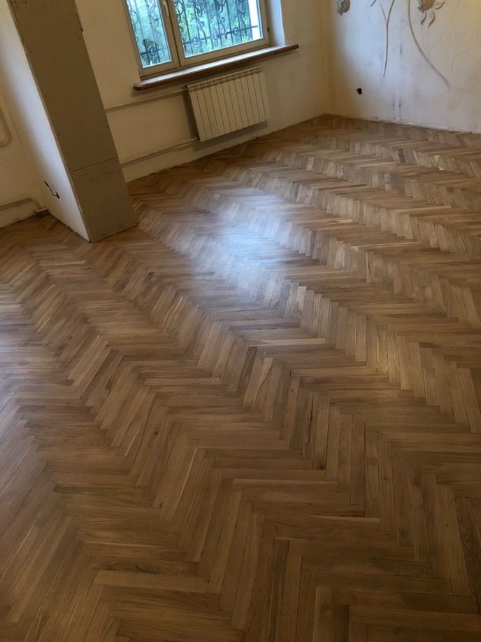 Компания «Вернисаж» выполнила реставрацию паркета для участников программы «Фазенда Лайф». Дубовый паркет, уложенный рисунком «английская елка», прослужил владельцам дома уже около 30 лет и отлично сохранился. Мы решили, что нет смысла его менять, достаточно просто освежить, чтобы он мог радовать клиента своим презентабельным видом еще десятки лет.