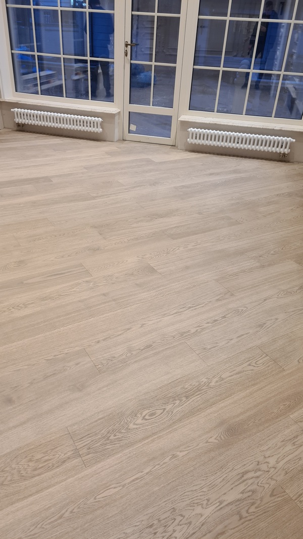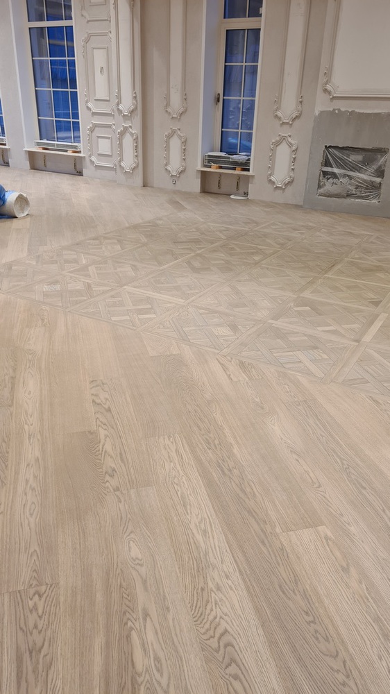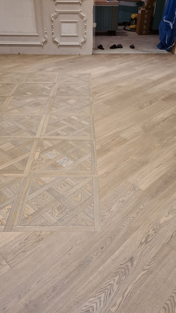 Услуга: укладка паркетной доски Coswick 19 мм на клей Berger BondПлощадь помещения: 300 м2