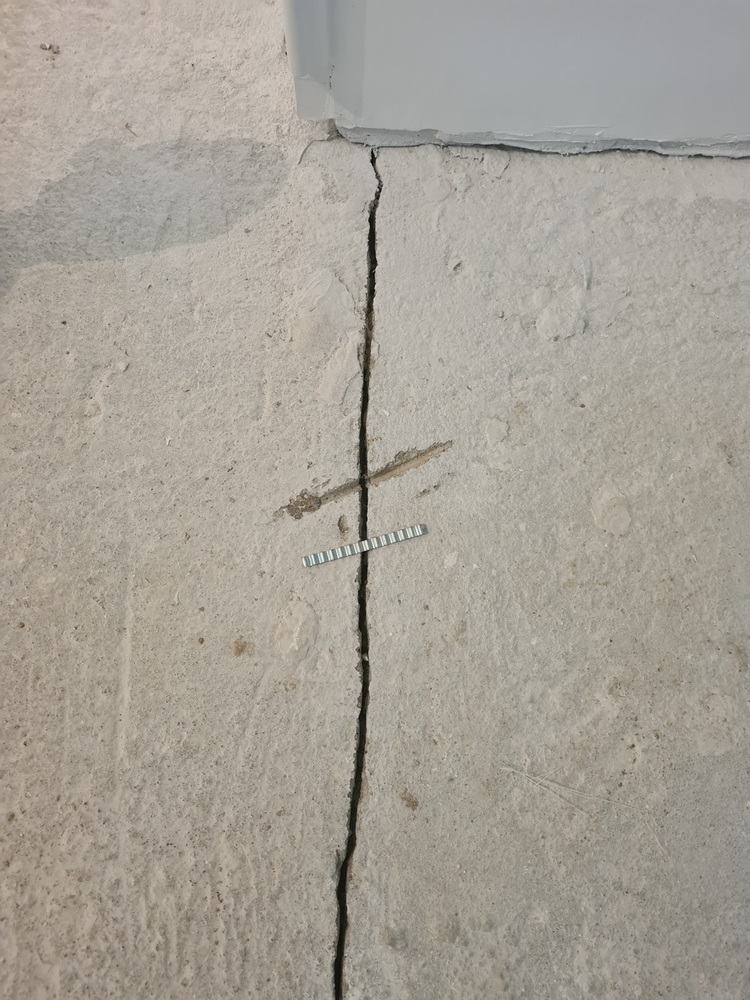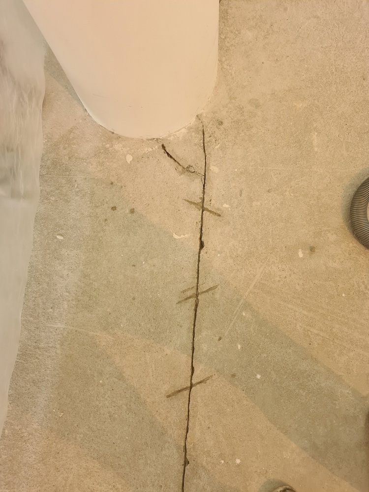Как выполнялись работы: первоначально все трещины расшили специальным инструментом – виброрезом, затем сделали расшивку для специальных рифленых железок, которые вставляются поперек шва, пропылесосили швы и заполнили средством для ремонта стяжек UZIN KR 516 на эпоксидной основе. Эпоксидная смола очень крепкая, хорошо себя зарекомендовала для этих целей. После смешивания компонентов смола заливается в трещины (она очень быстро схватывается и становится крепкой), далее их нужно просыпать кварцевым песком.