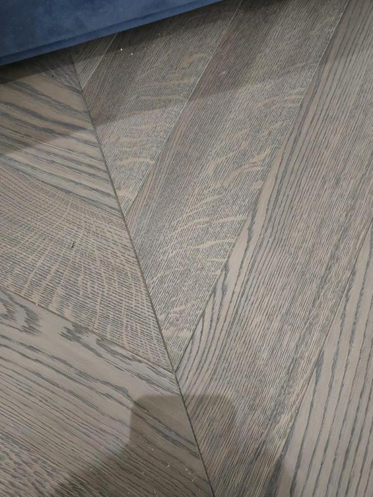На одном из очередных проектов специалисты компании «Вернисаж» выполнили работы по локальной реставрации дефектов на паркете. Как видно на фотографиях, на уложенной «елочке» был скол на уголке, а в другом месте были поперечные царапины, по всей видимости от ножек кровати. Реставратор компании «Вернисаж» выехал на объект и успешно справился с поставленной задачей.