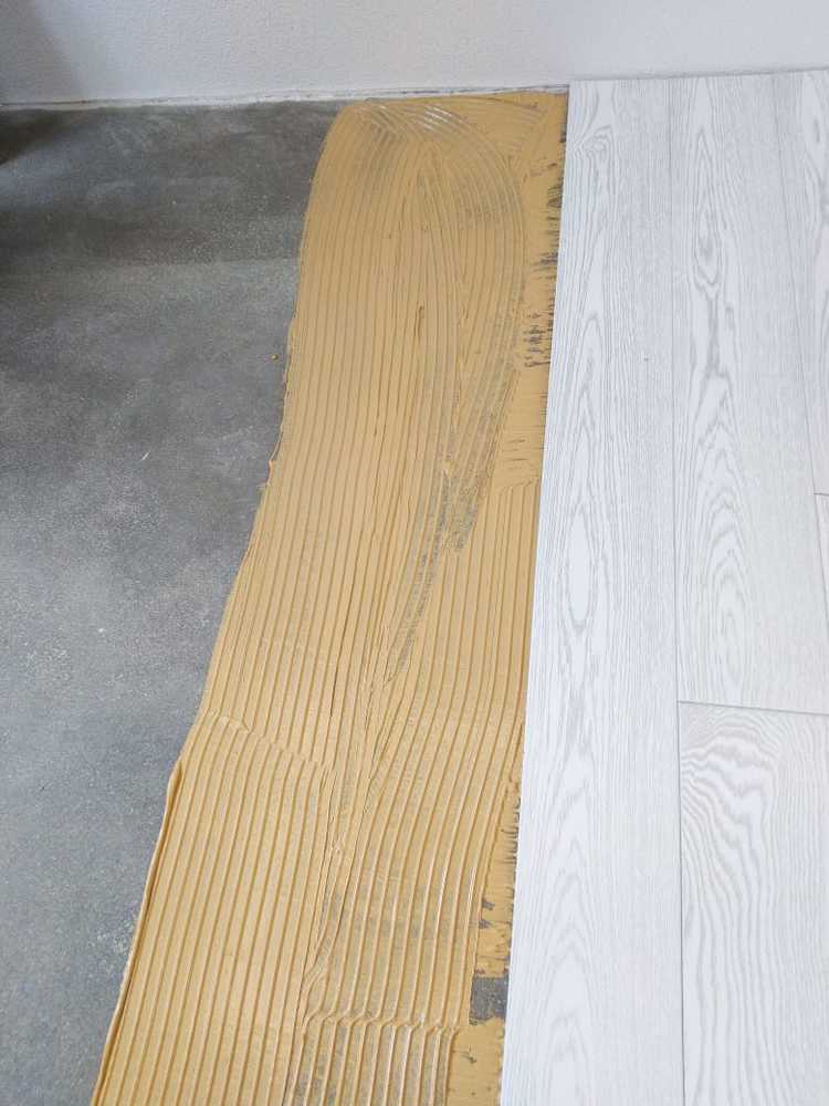 - Укладка инженерной доски Parento на эластичный полиуретановый клей Berger Bond M1X
