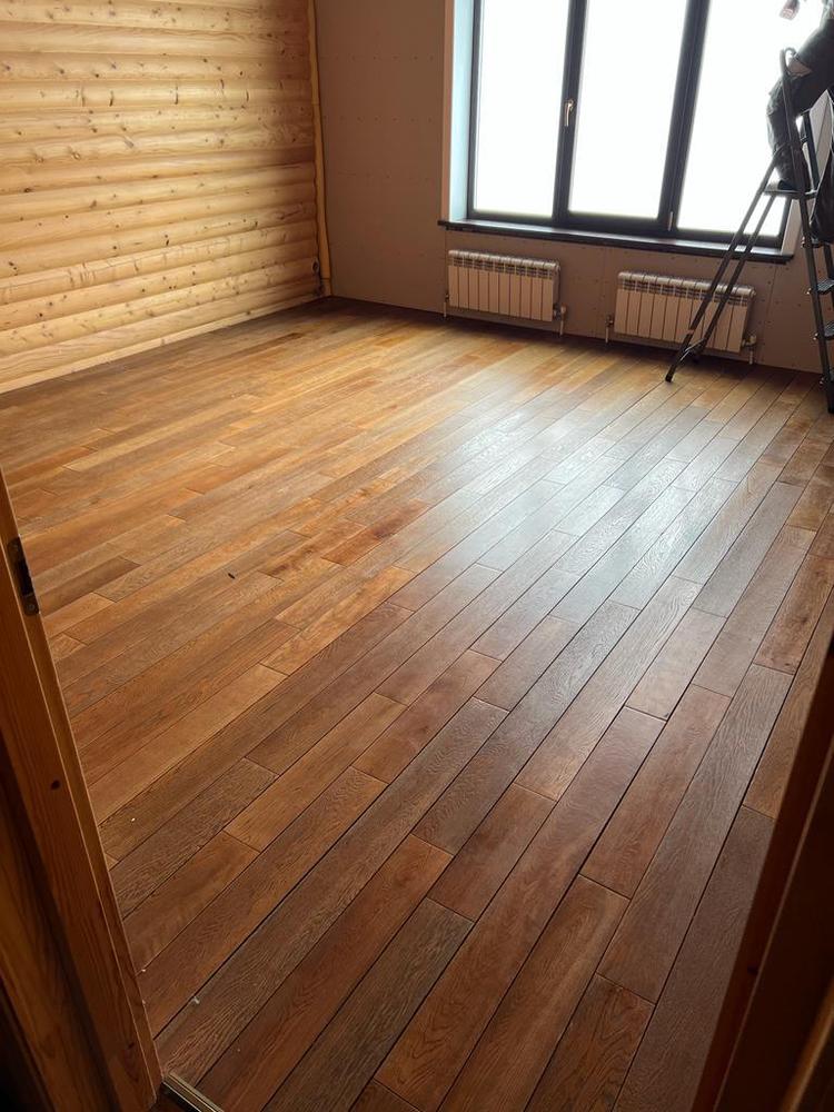 - Покрытие паркета двухкомпонентным маслом Berger Base Oil цвет Венге
