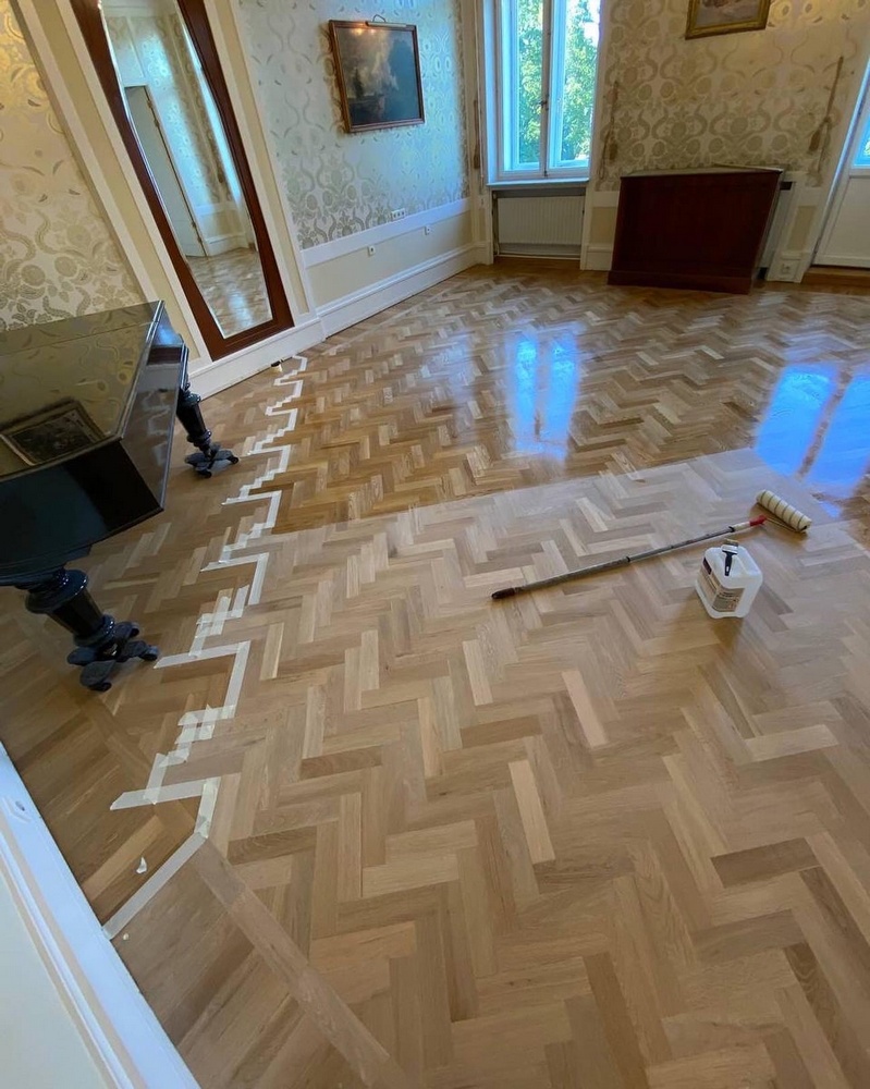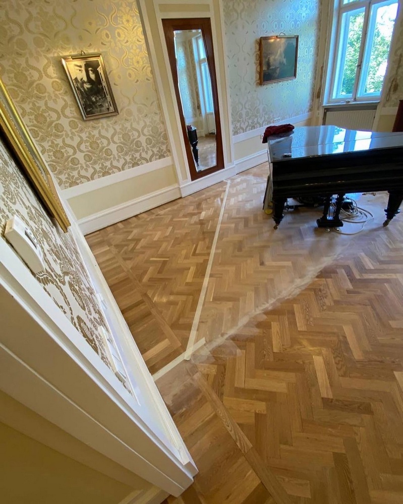 Мастера компании «Вернисаж» выполнили ремонт штучного паркета в частной квартире в Санкт-Петербурге. Это была сложная задача, но мы справились!