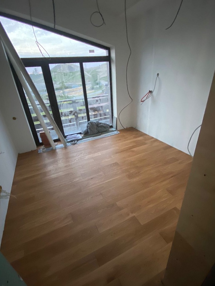 Мастера компании «Вернисаж» выполнили укладку инженерной доски (шип-паз) из дуба в сортировке селект (15х150х400-1500) в частном доме в Санкт-Петербурге.