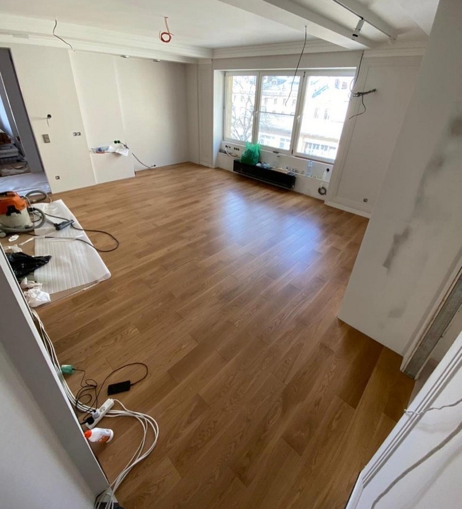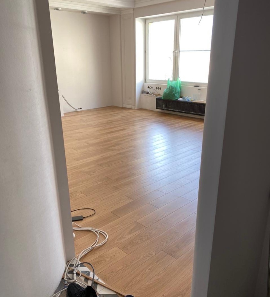 Мастера компании «Вернисаж» выполнили укладку инженерной доски в частной квартире в Санкт-Петербурге.