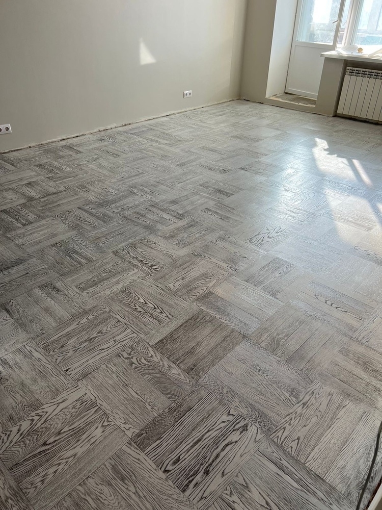Мастера компании «Вернисаж» выполнили работы по тонировке паркета в частной квартире в Санкт-Петербурге. Уже прожившие какую-то жизнь полы решили обновить новым финишным покрытием. В наших салонах есть много образцов цветных масел для древесины, а также мы делаем индивидуальные выкраски цвета. В данном случае образец делали на объекте заказчика. Буквально уголок пола, чтобы показать и согласовать выбранный цвет у нас в салоне на Среднем, 86.