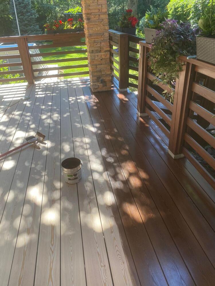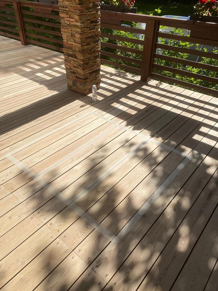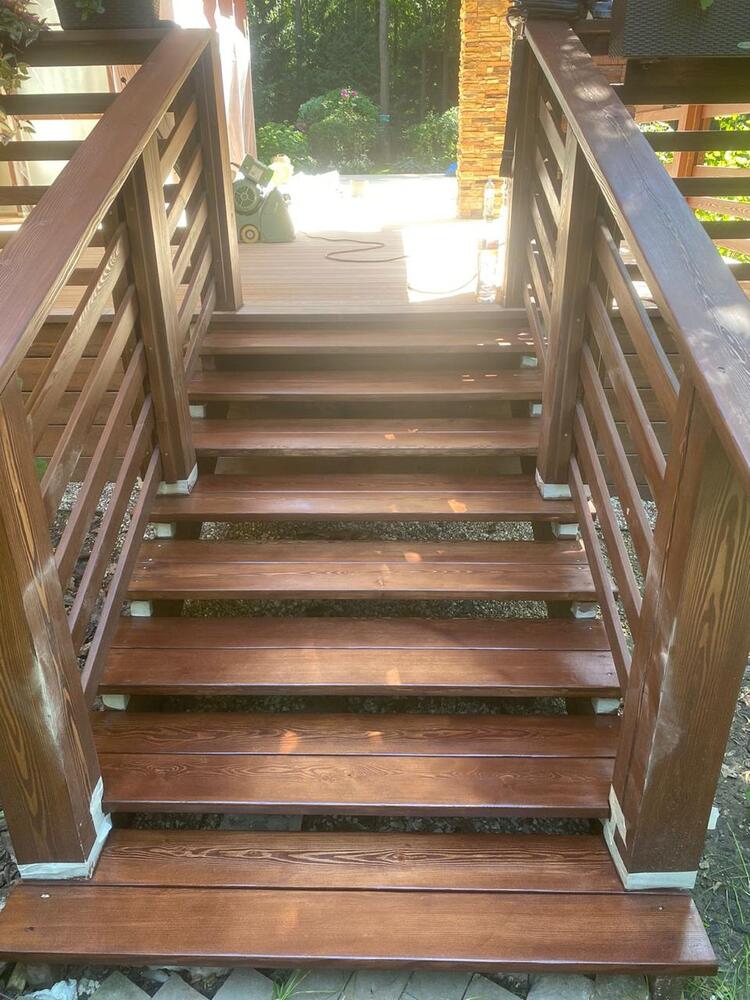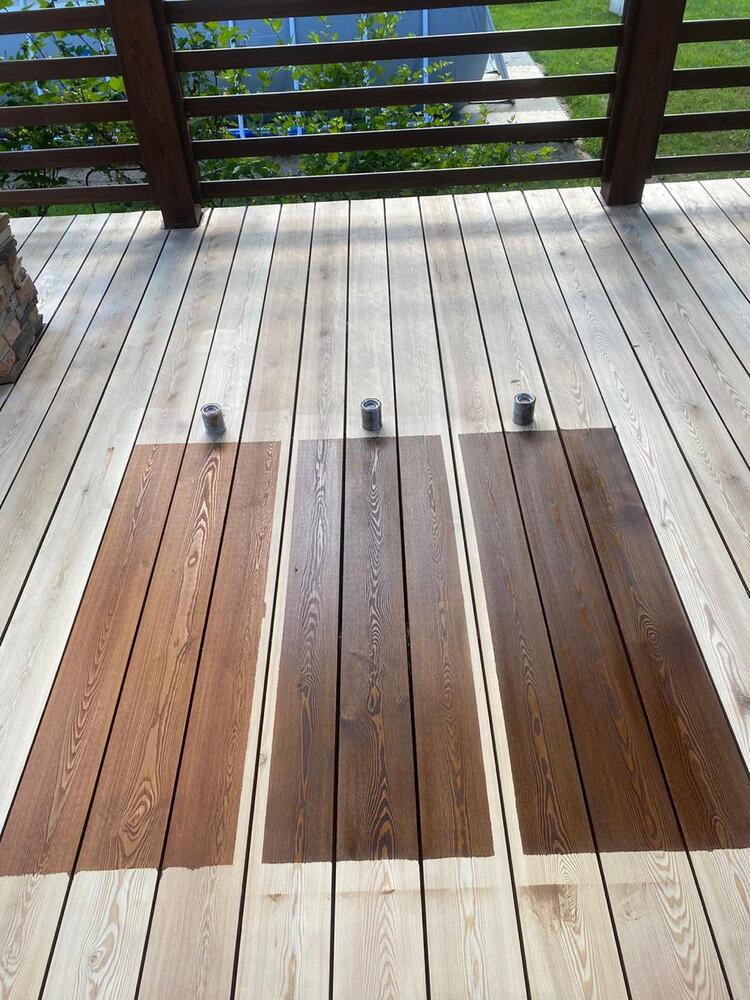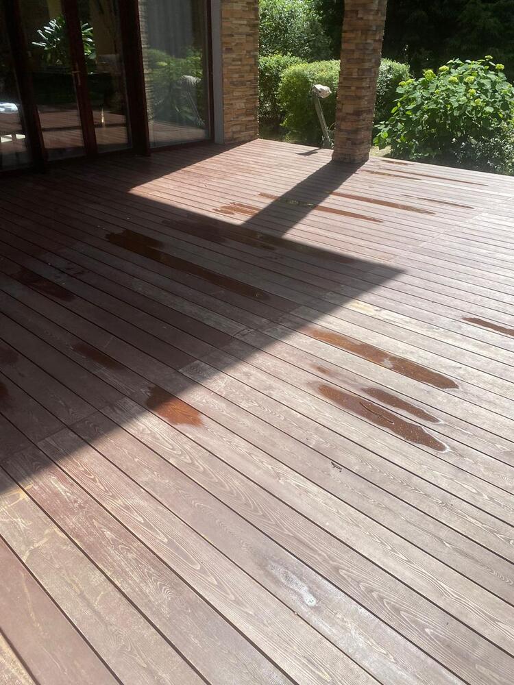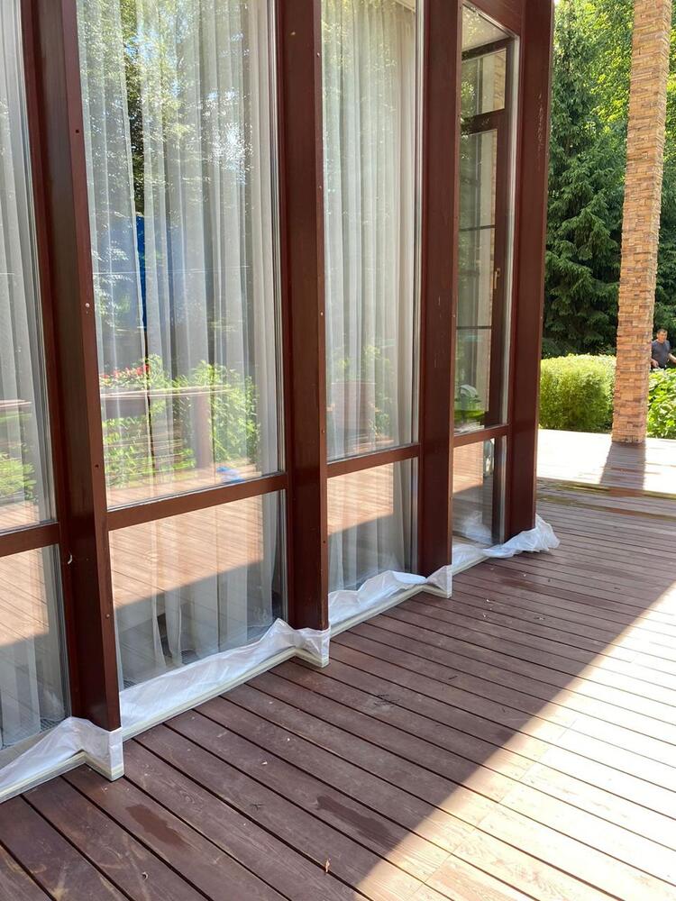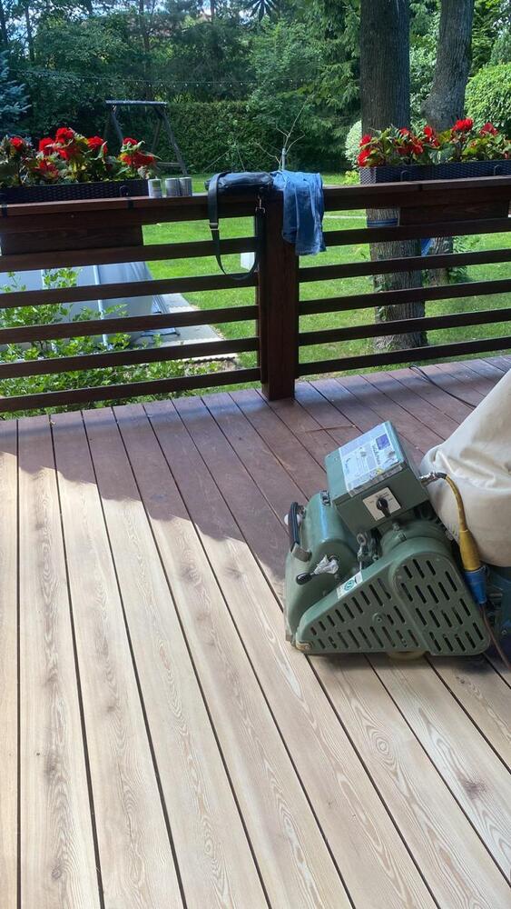 Мастера компании «Вернисаж» выполнили обновление и шлифовку террасы из лиственницы в коттеджном поселке «Променад» в Москве.