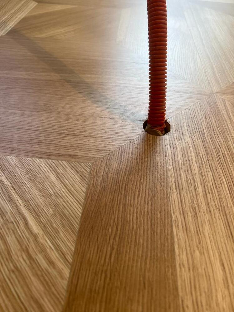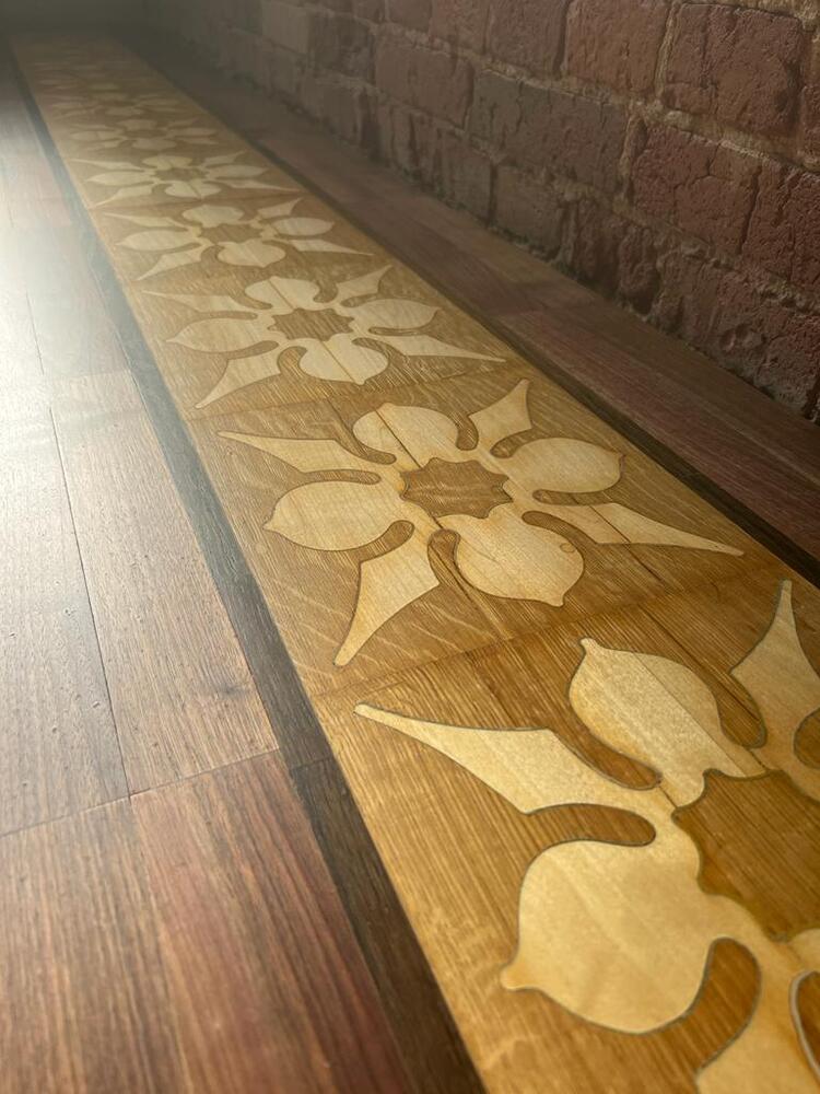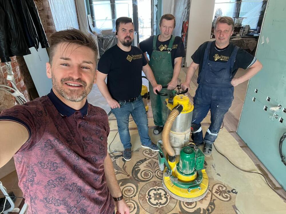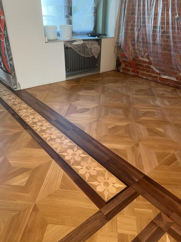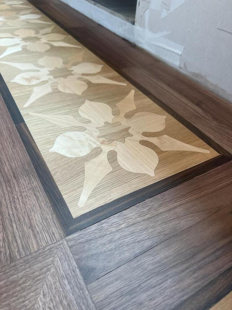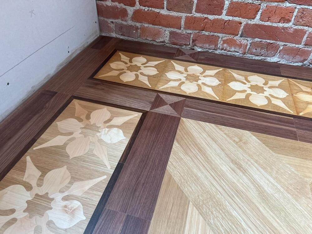 Закончен объект по ремонту исторического паркета в самом центре Москвы, недалеко от храма Христа Спасителя, где специалисты компании «Вернисаж» делали очень нестандартную работу. Сам по себе объект очень небольшой, порядка 51 кв.м по паркету. Но работа была непростая, потому что у клиента стояла задача сохранить художественную розетку конца 19 века и фрагмент художественного бордюра, а все остальное мы сделали заново.