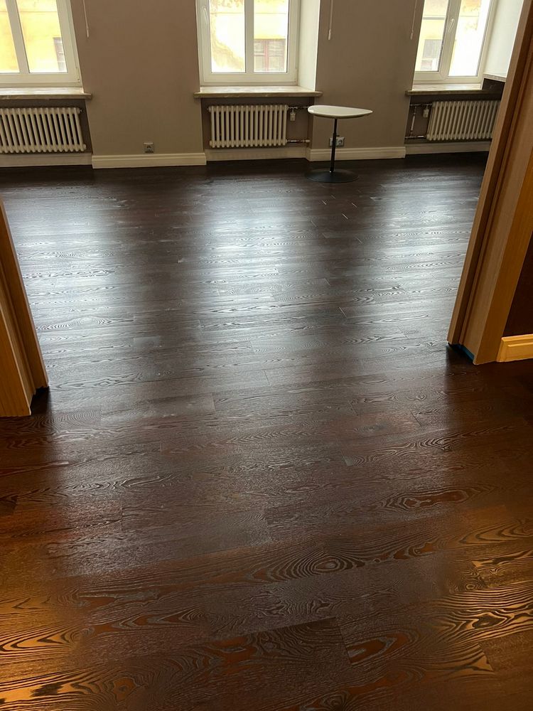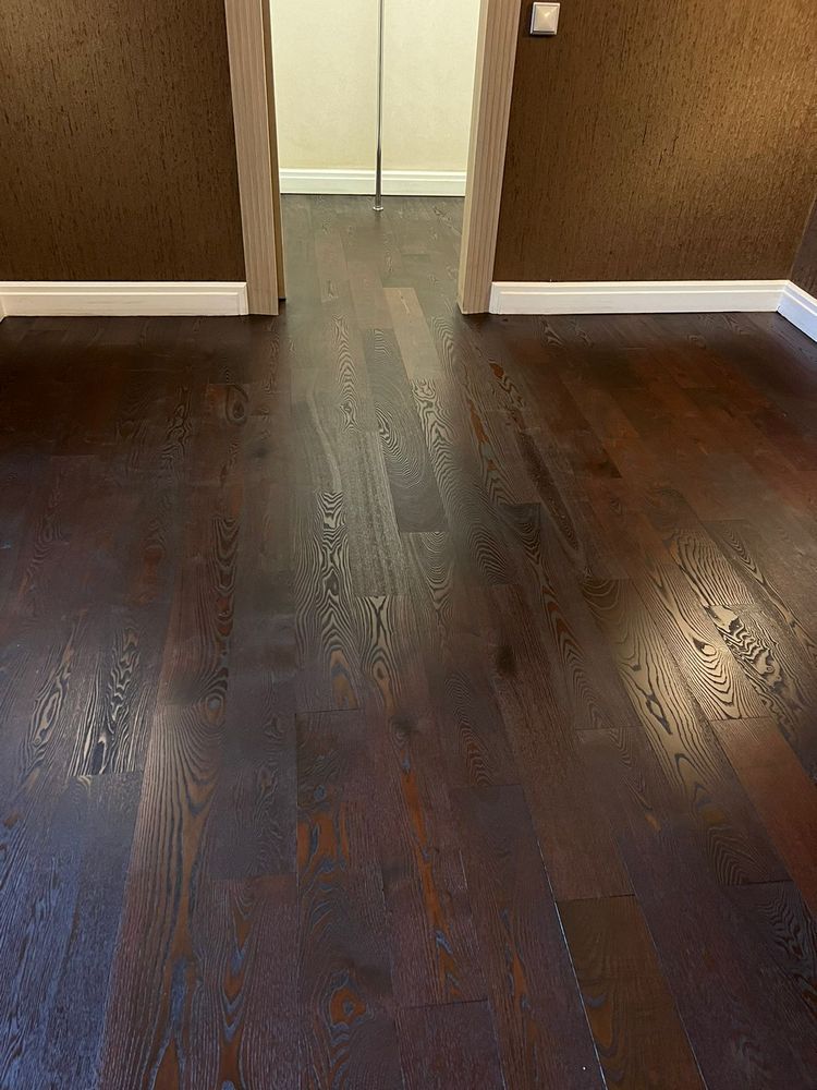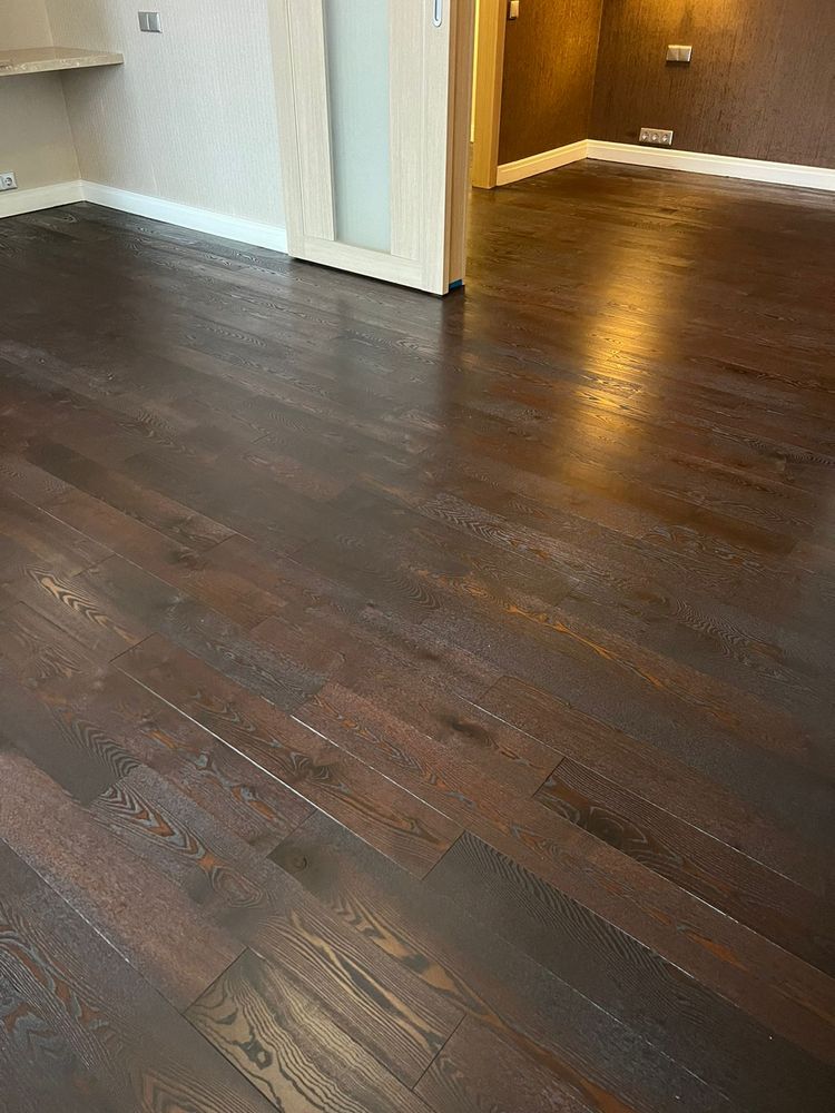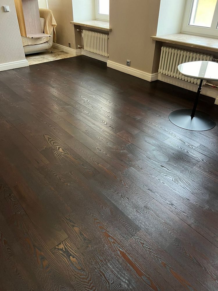 Мастера компании «Вернисаж» выполнили ремонт паркета из копченого дуба в квартире в Санкт-Петербурге.
