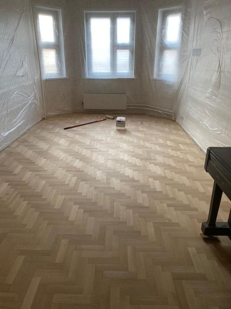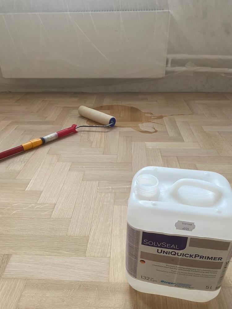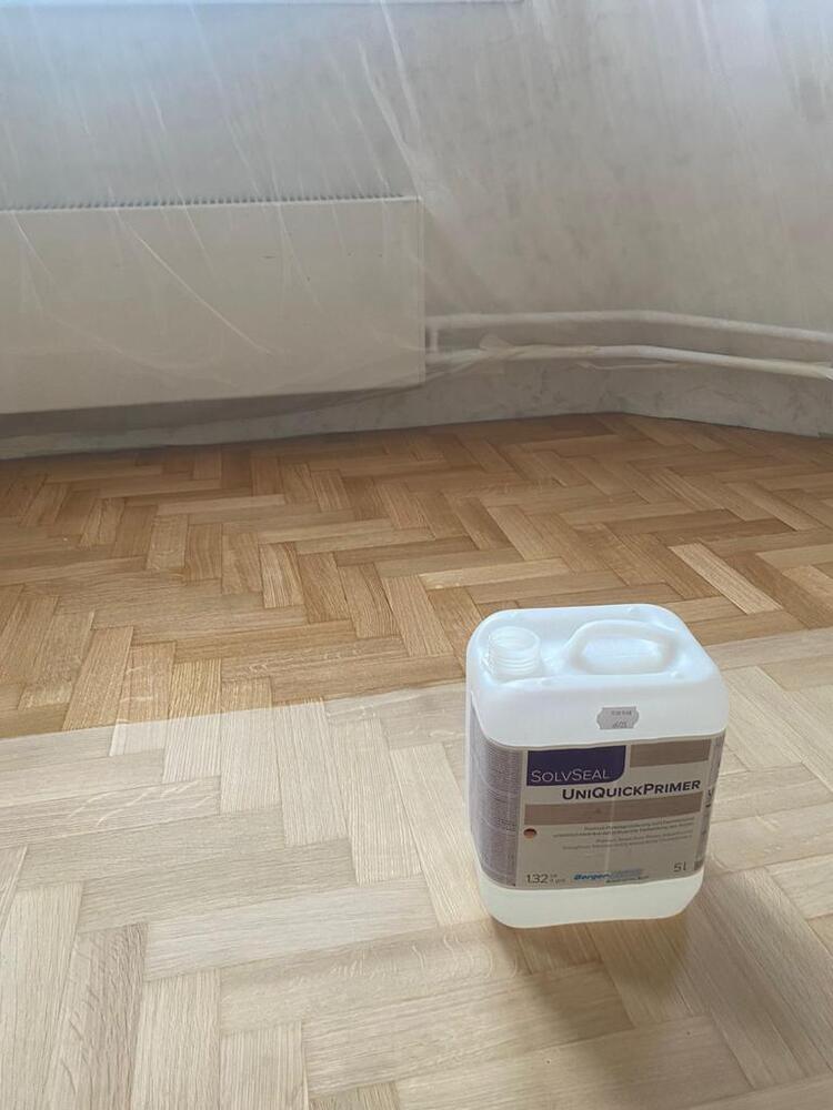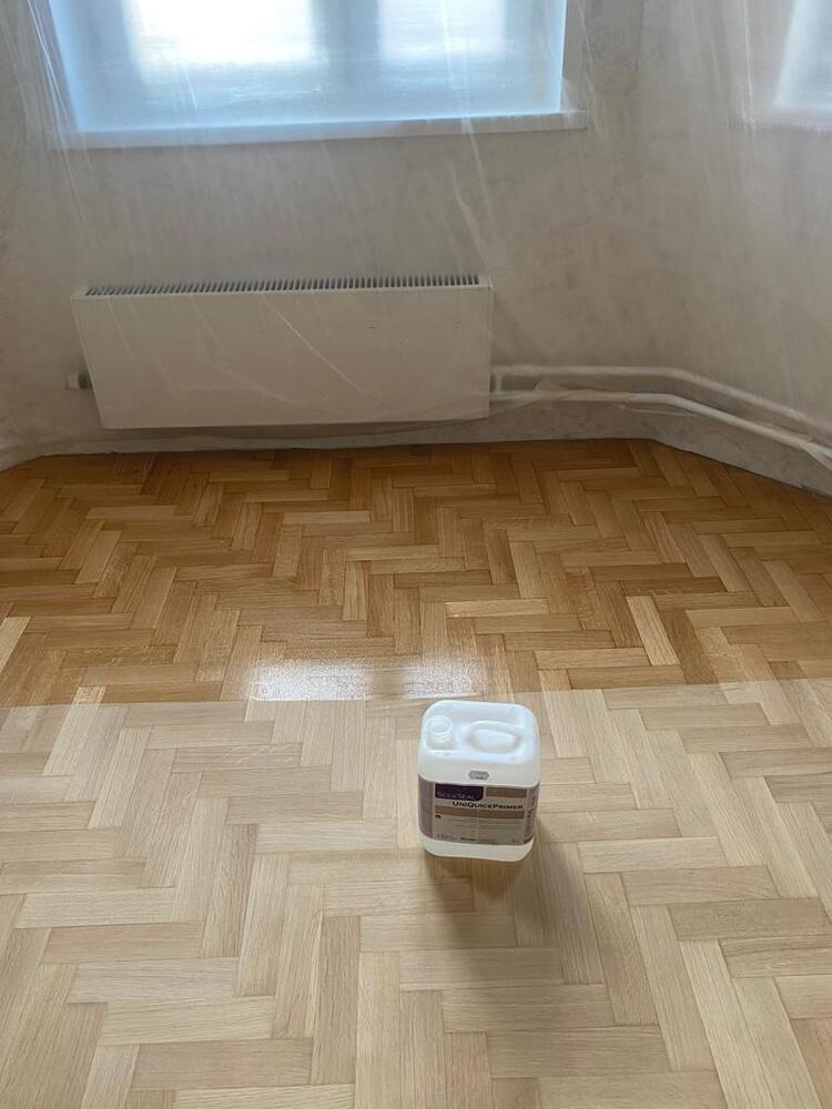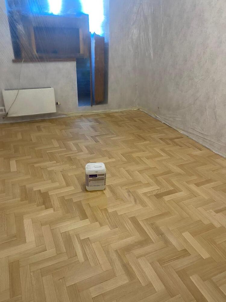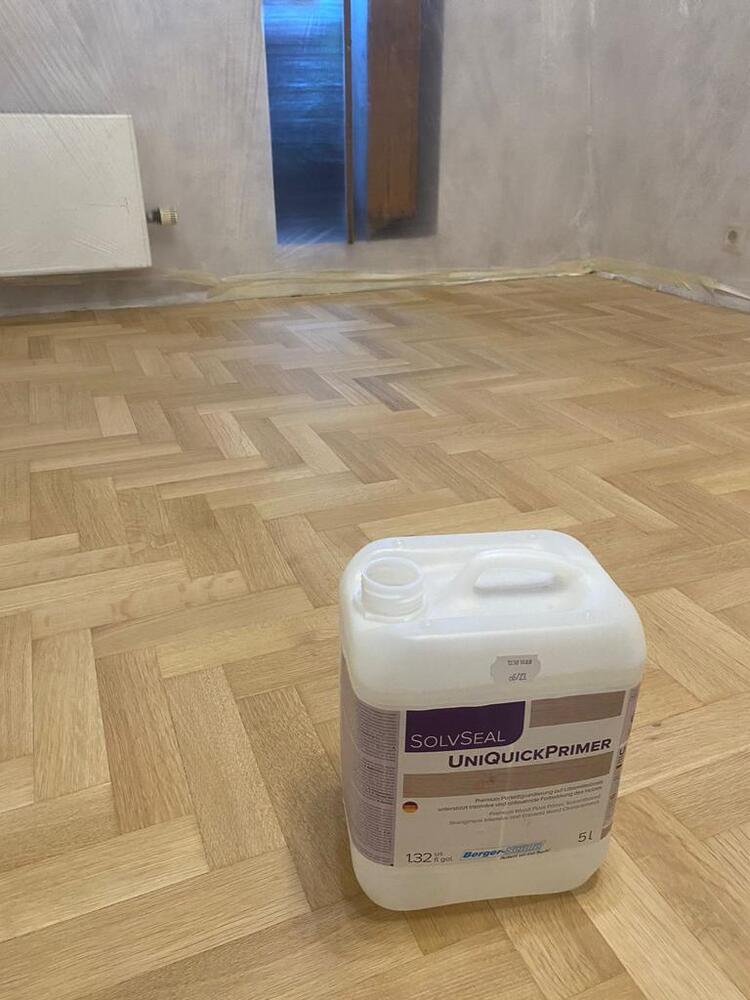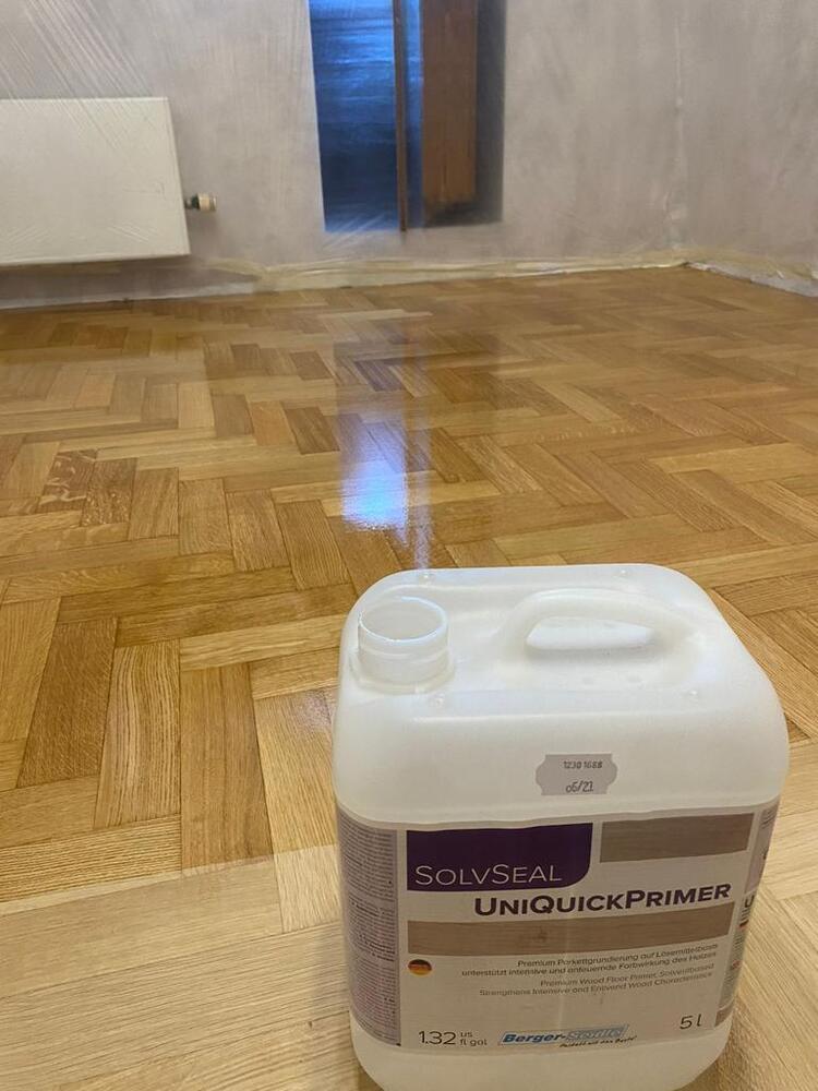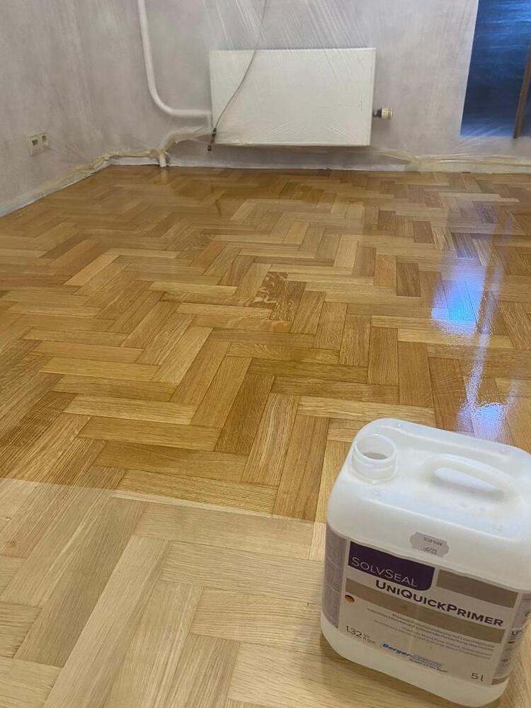 - покрытие паркета двухкомпонентным полиуретановым лаком на водной основе Berger Aqua-Seal GreenStar