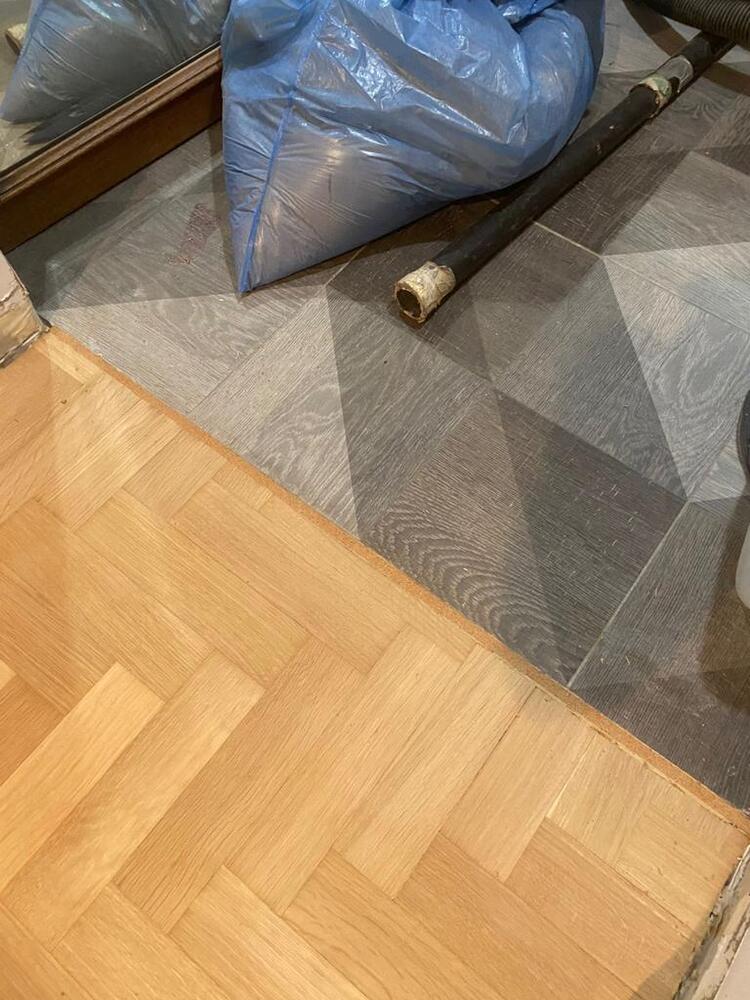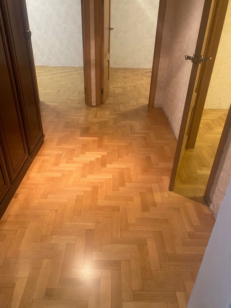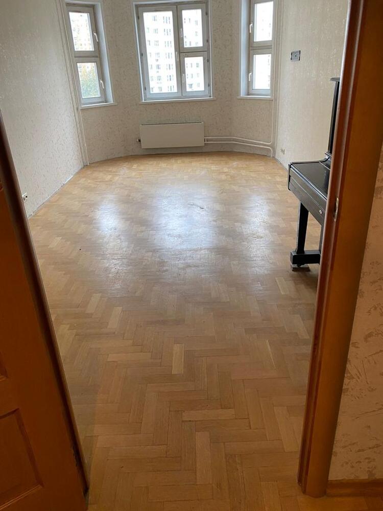 Мастера компании «Вернисаж» выполнили ремонт штучного паркета на объекте в районе метро Люблино в Москве.