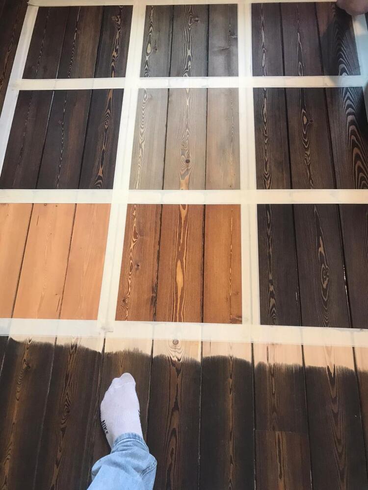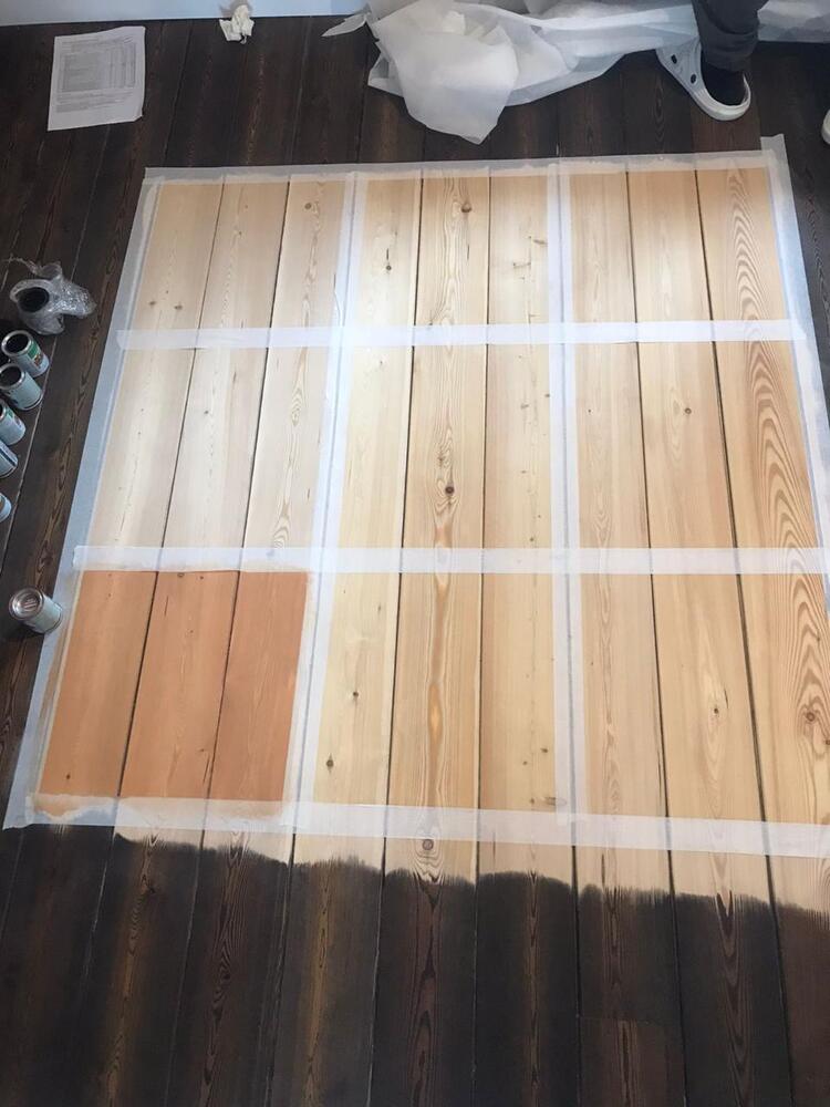 - подбор цвета паркета с помощью пробных выкрасов