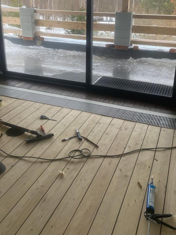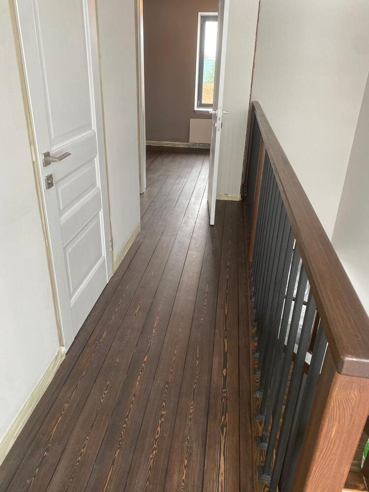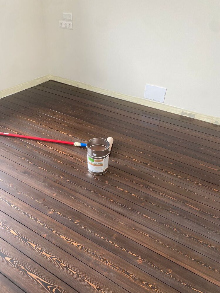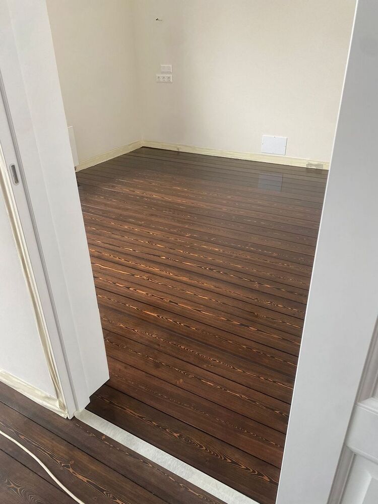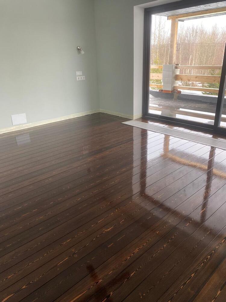 Мастера компании «Вернисаж» выполнили ремонт паркета из лиственницы на объекте в коттеджном поселке «Софринские Пруды» в Подмосковье.