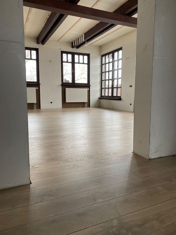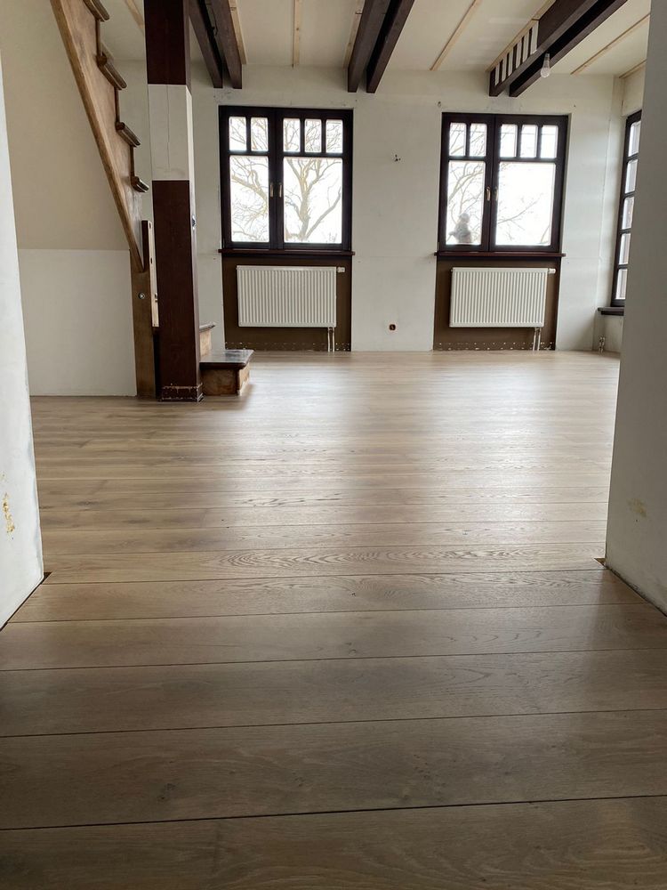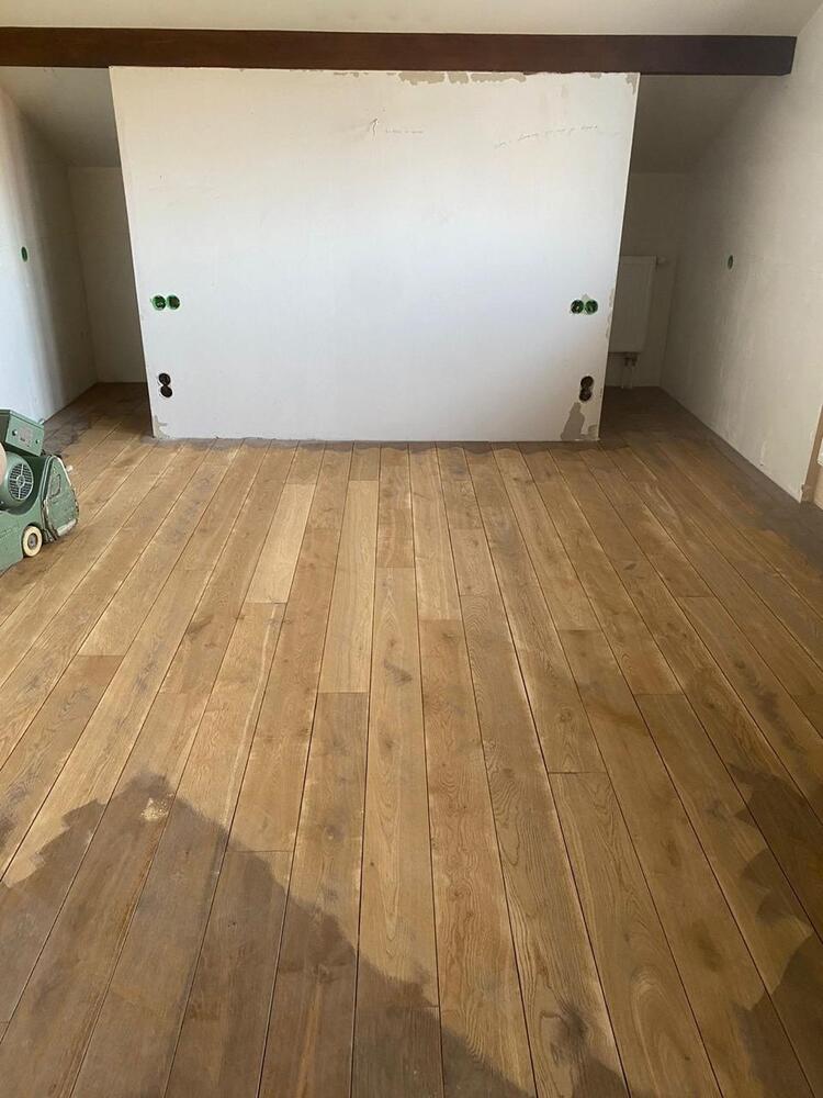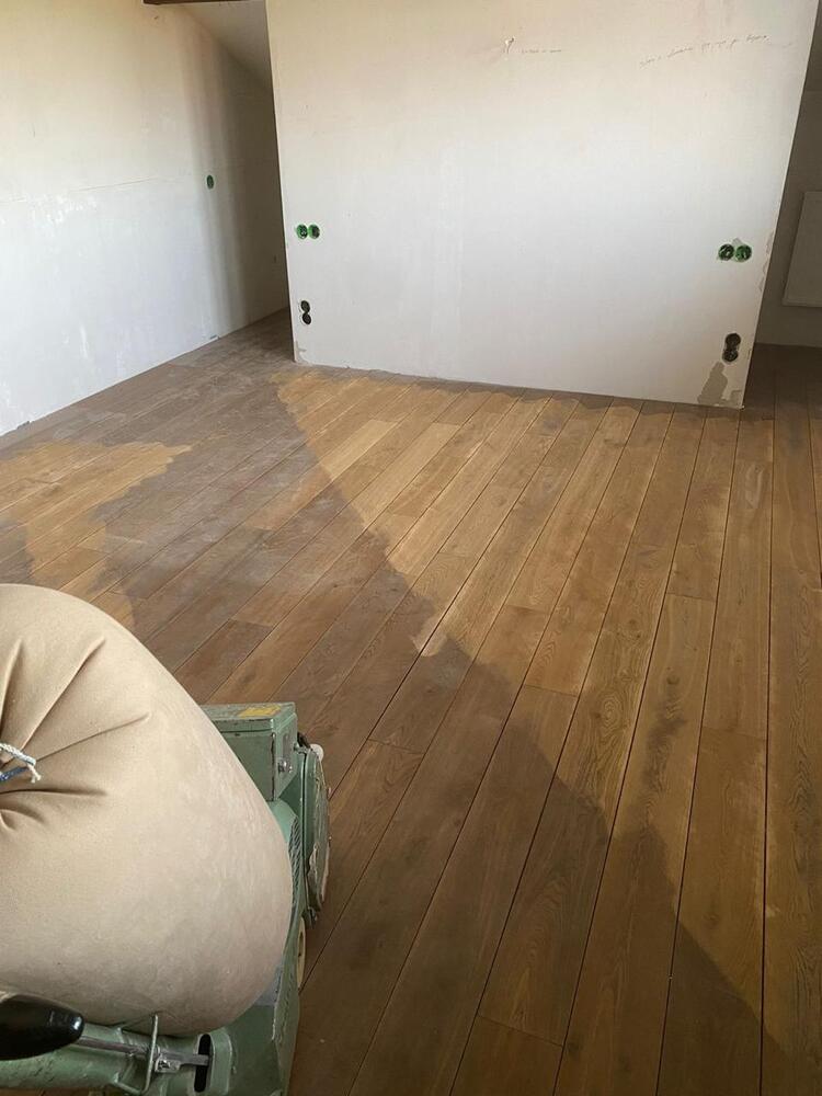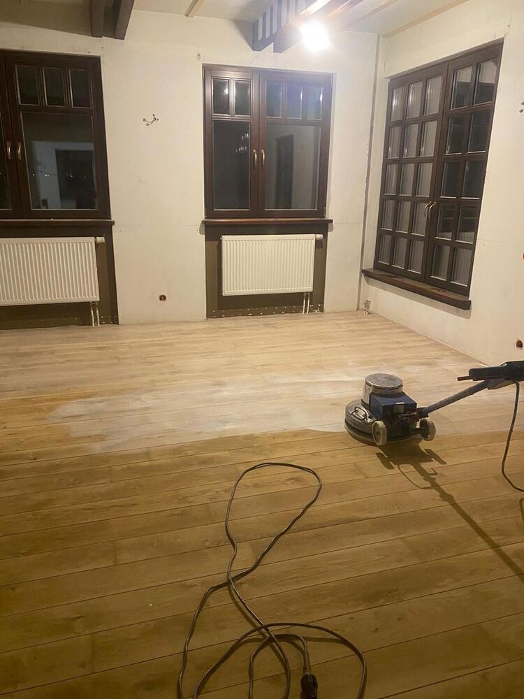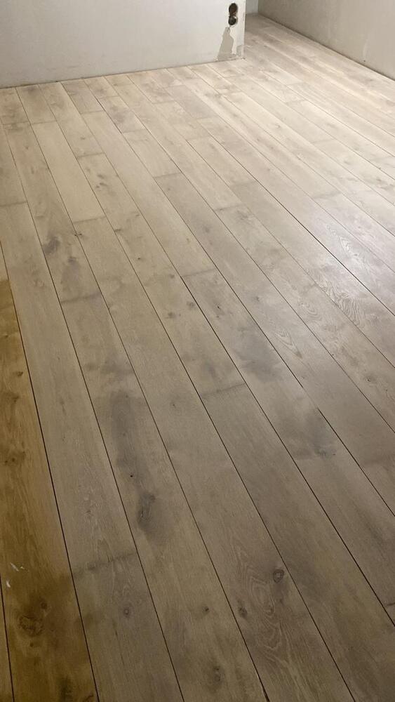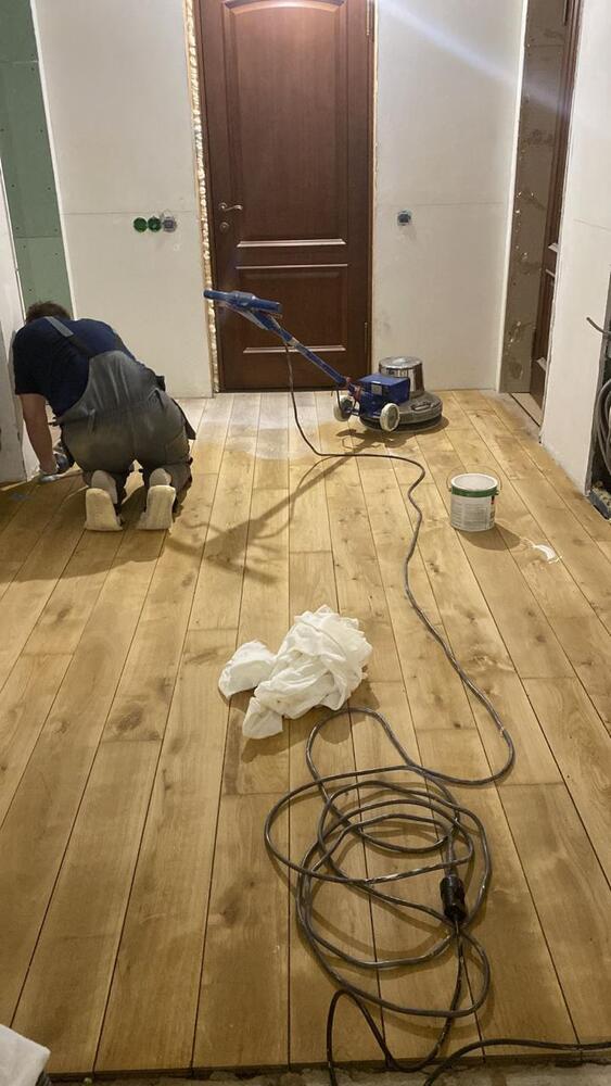 Мастера компании «Вернисаж» выполнили ремонт массивного паркета в частном доме на в Москве. На объекте была уложена массивная доска с аммиачным травлением, довольно сложная в работе.