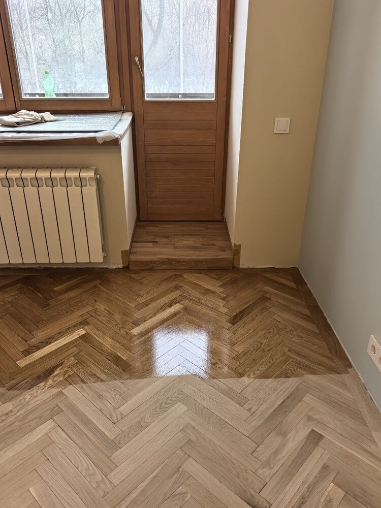 Мастера компании «Вернисаж» выполнили ремонт паркета на объекте на ул. Берзарина в Москве.