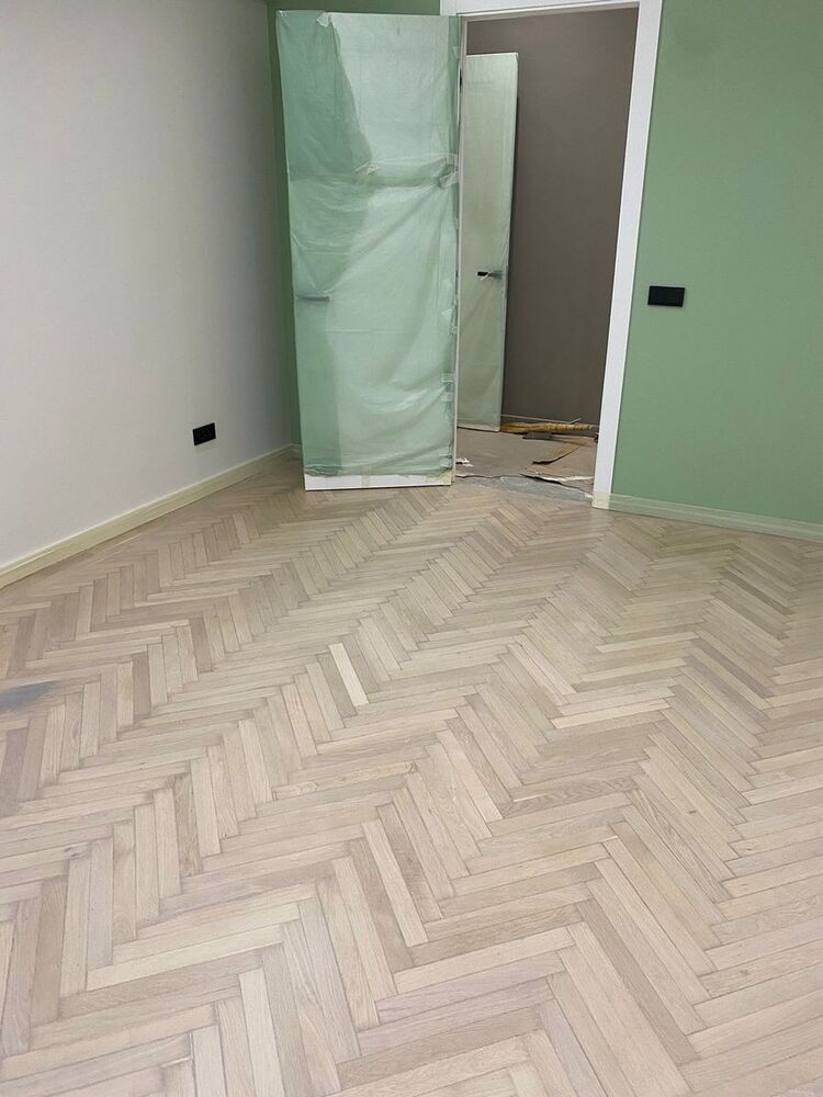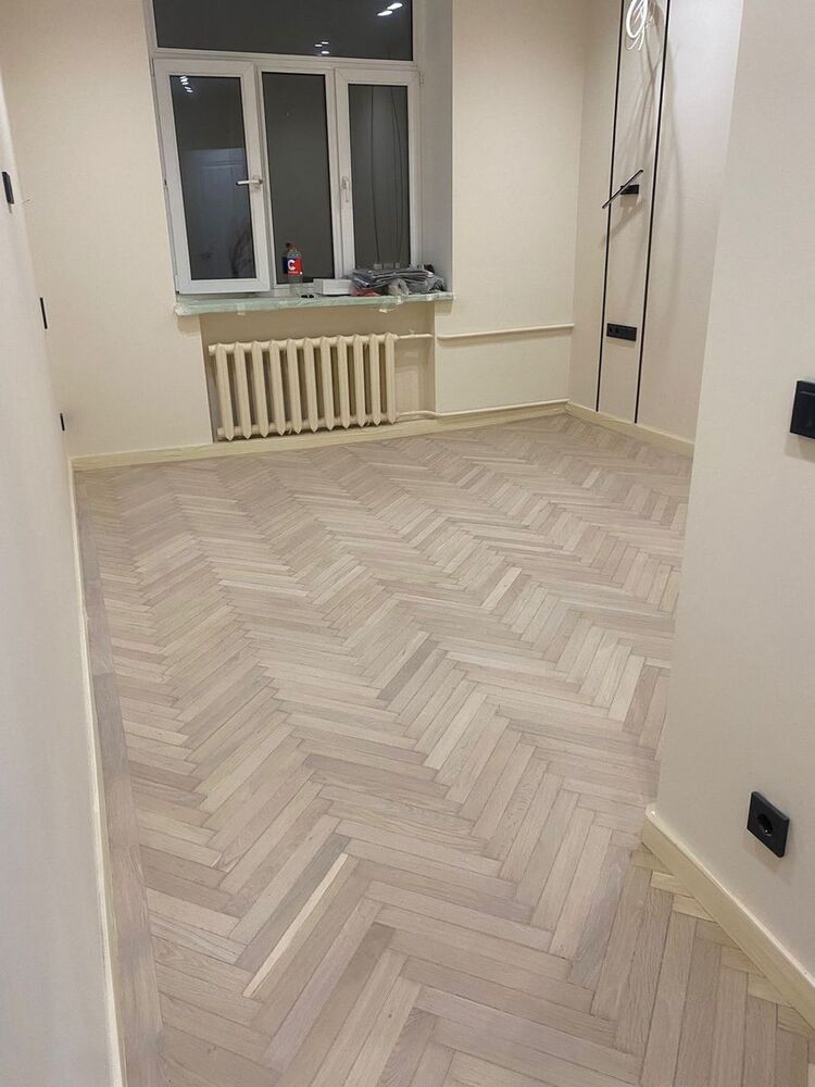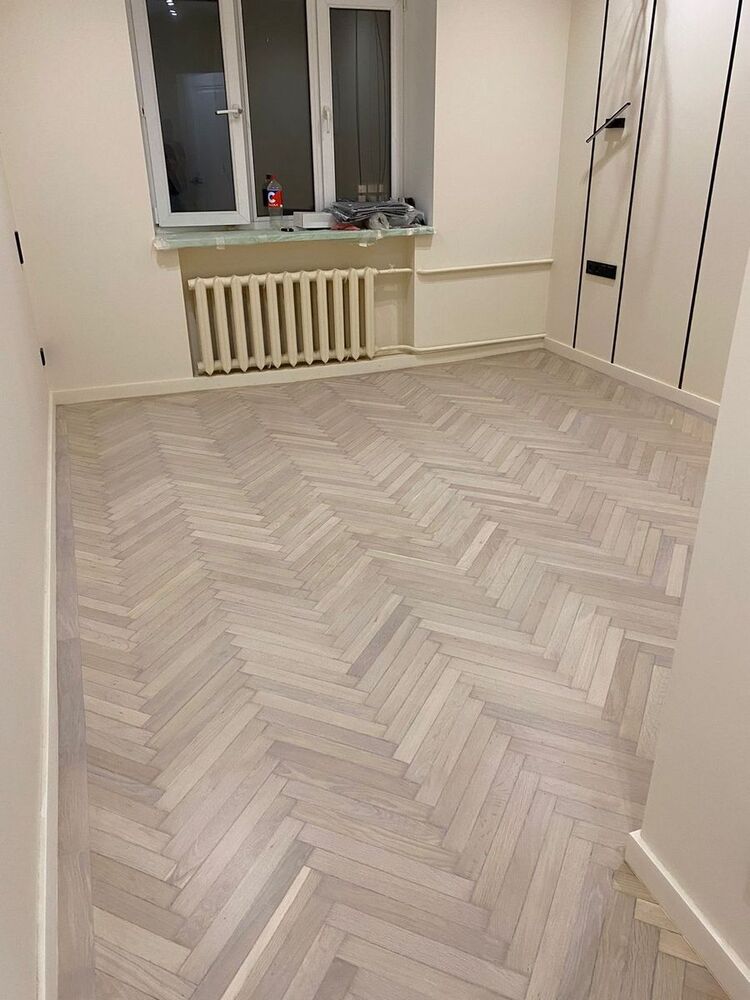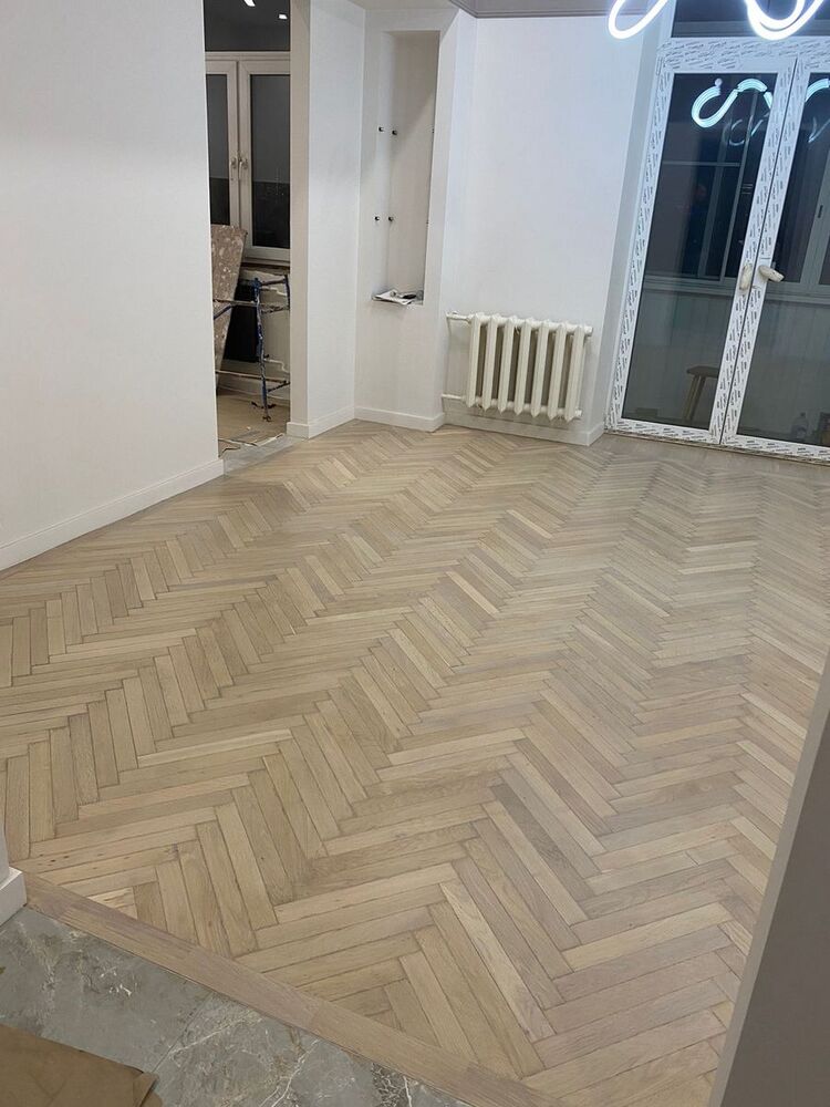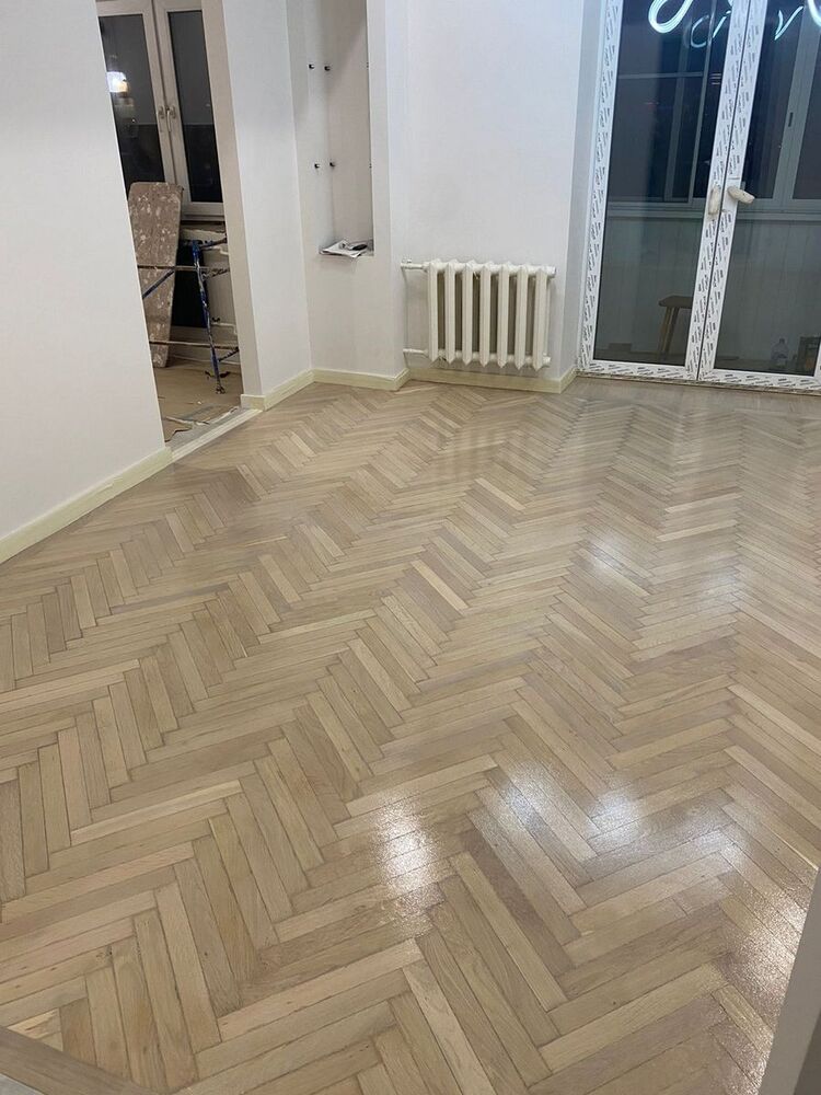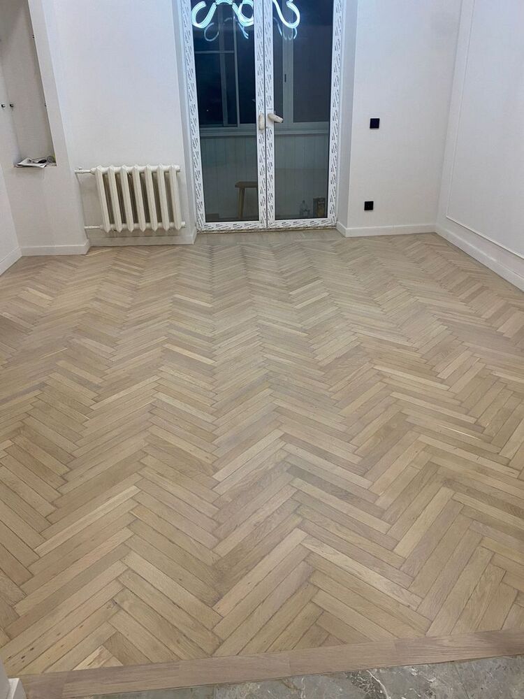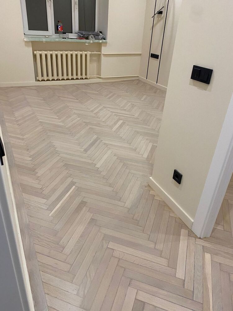 - покрытие паркета ультраматовым лаком Berger Nordic White в 7 слоев