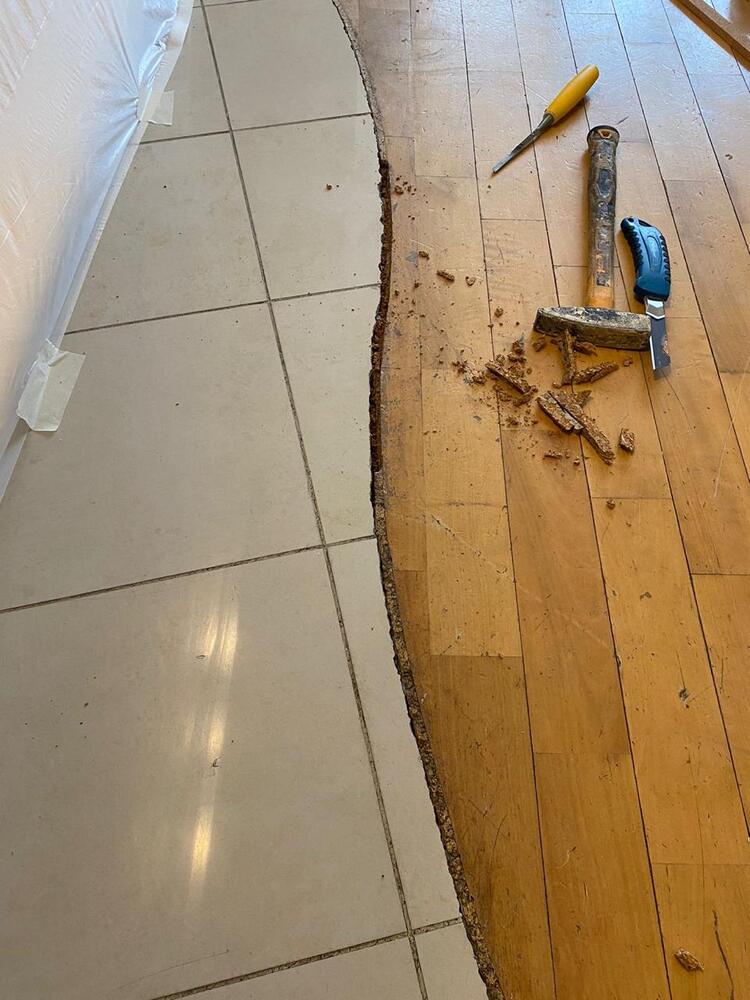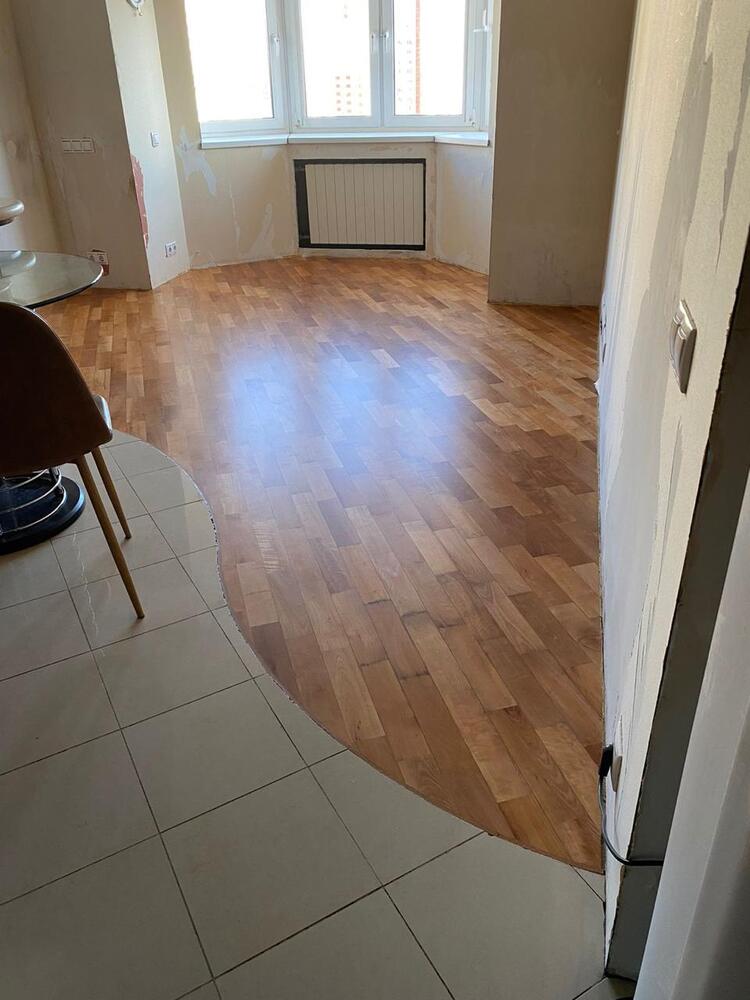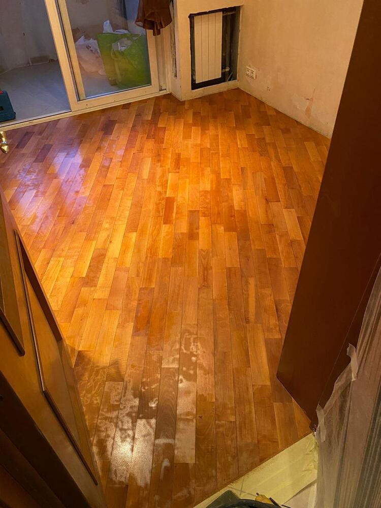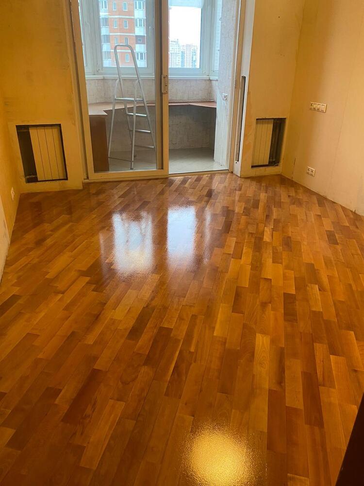 Мастера компании «Вернисаж» выполнили ремонт паркета из груши на объекте в районе Куркино г. Москвы.