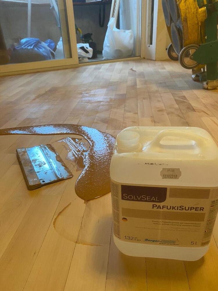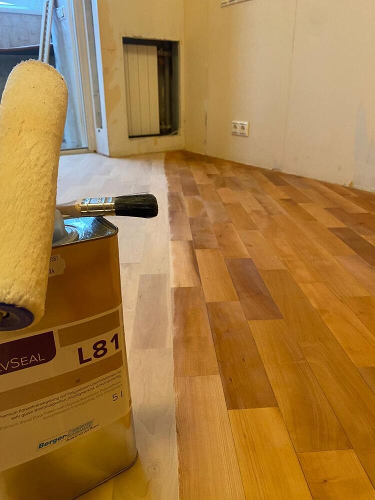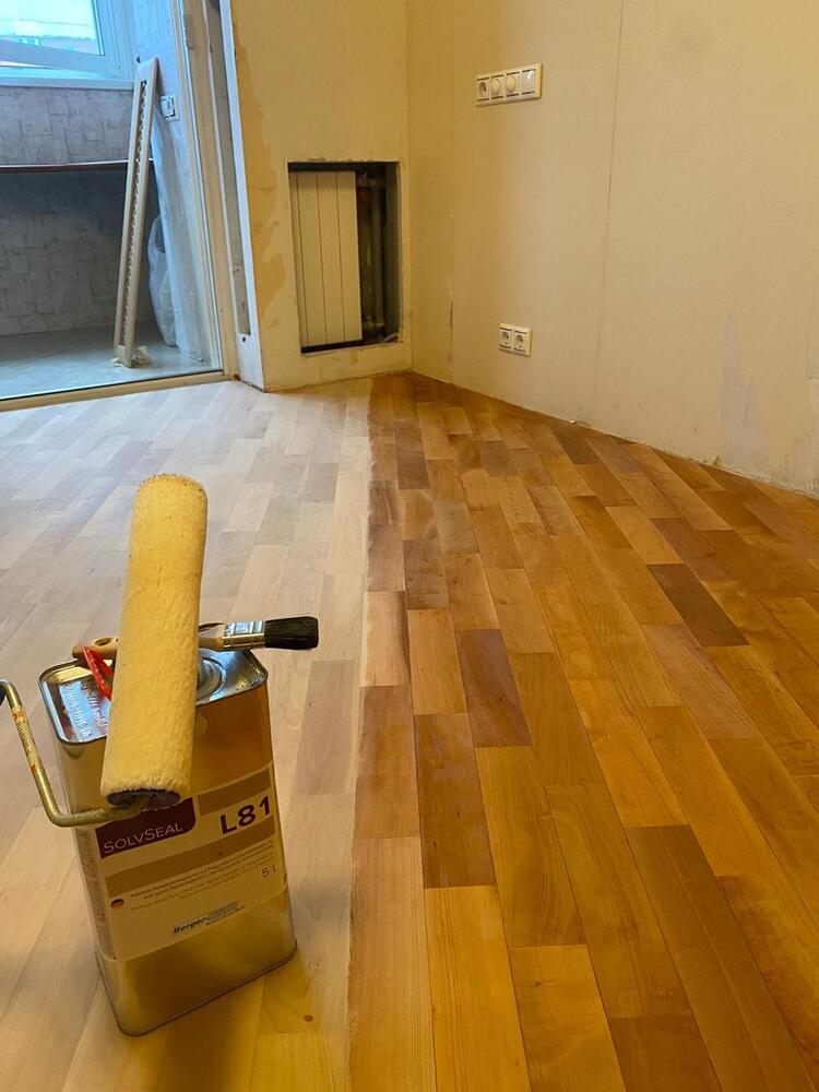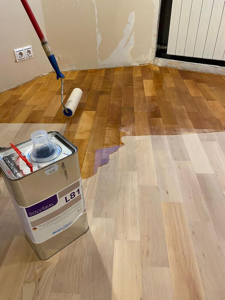 - покрытие паркета однокомпонентным поджигающим грунтом Berger L81 в 2 слоя