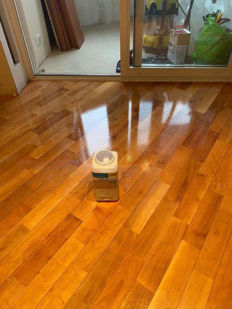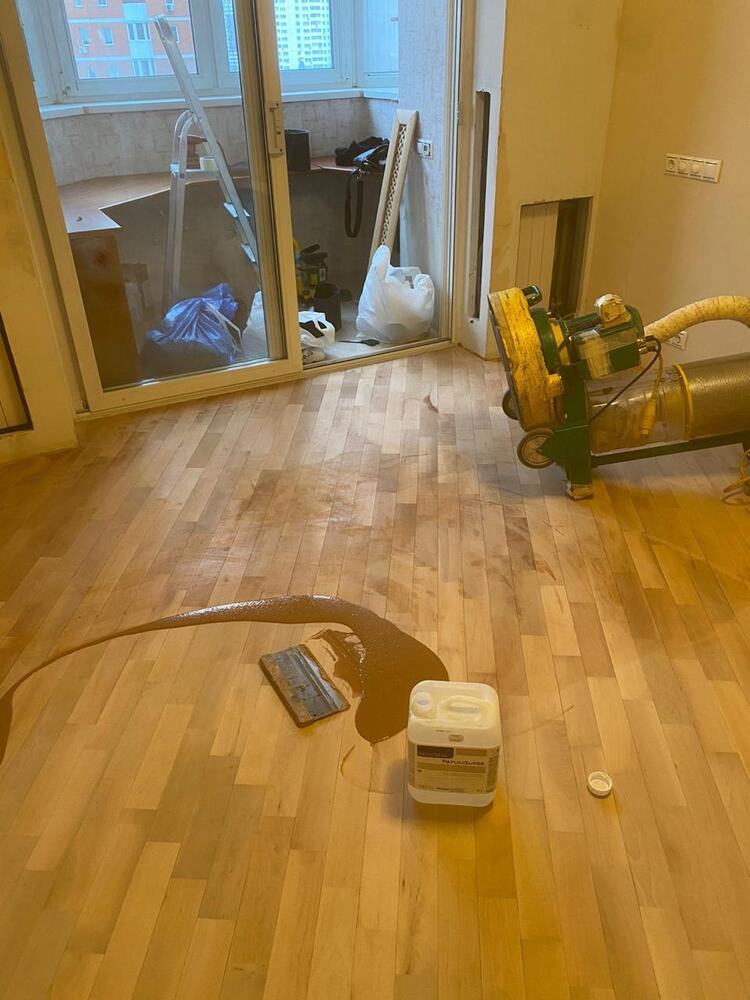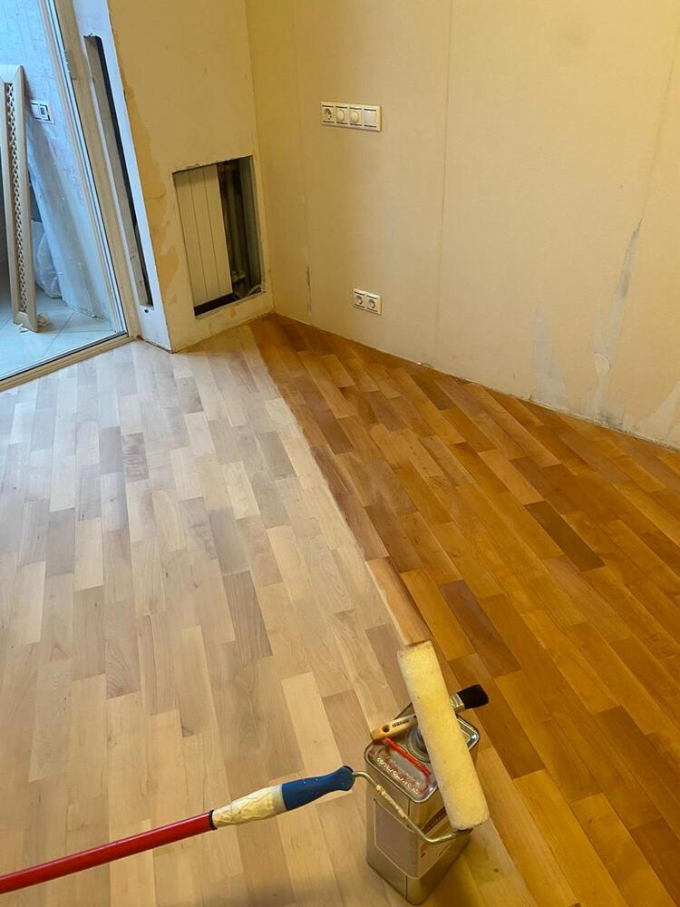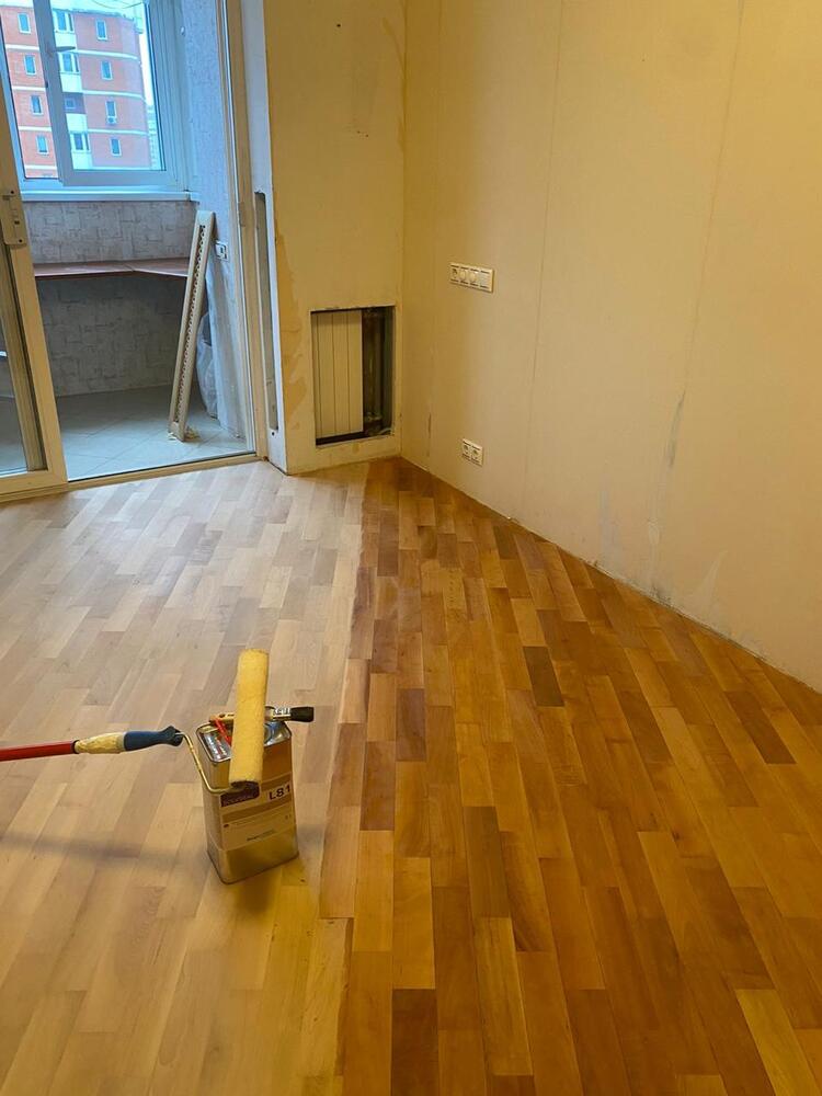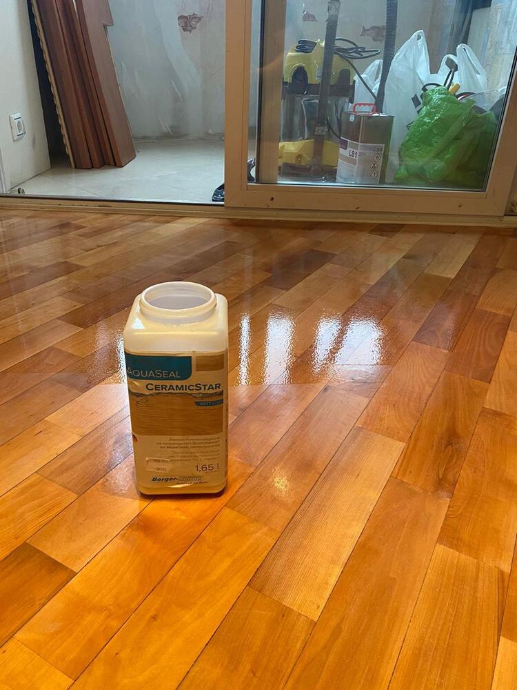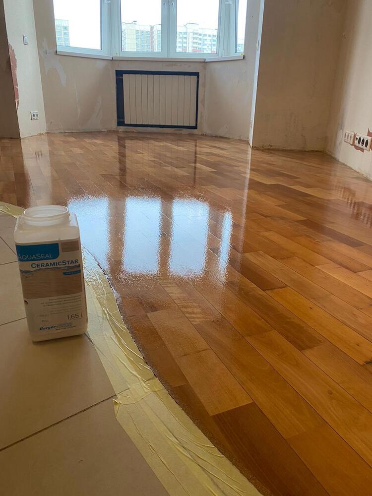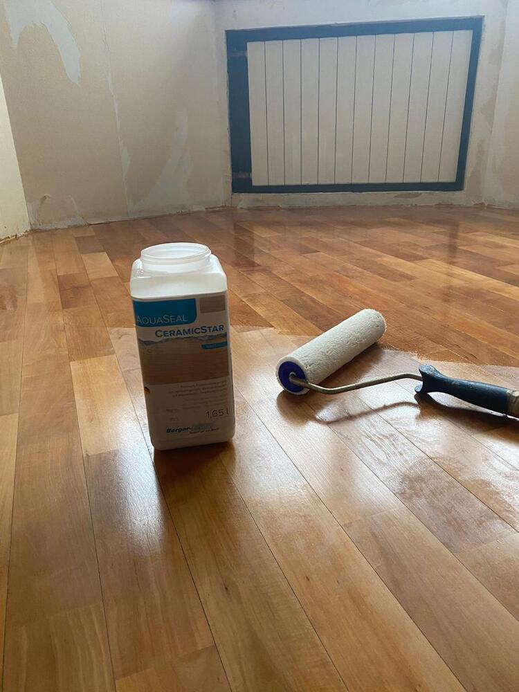 - покрытие паркета двухкомпонентным полиуретановым лаком Berger CeramicStar в 2 слоя