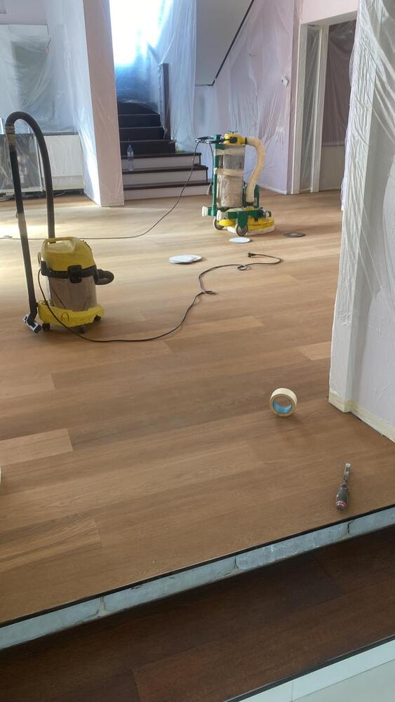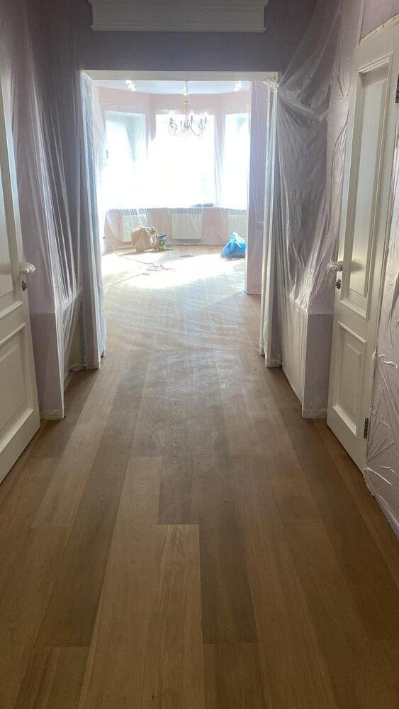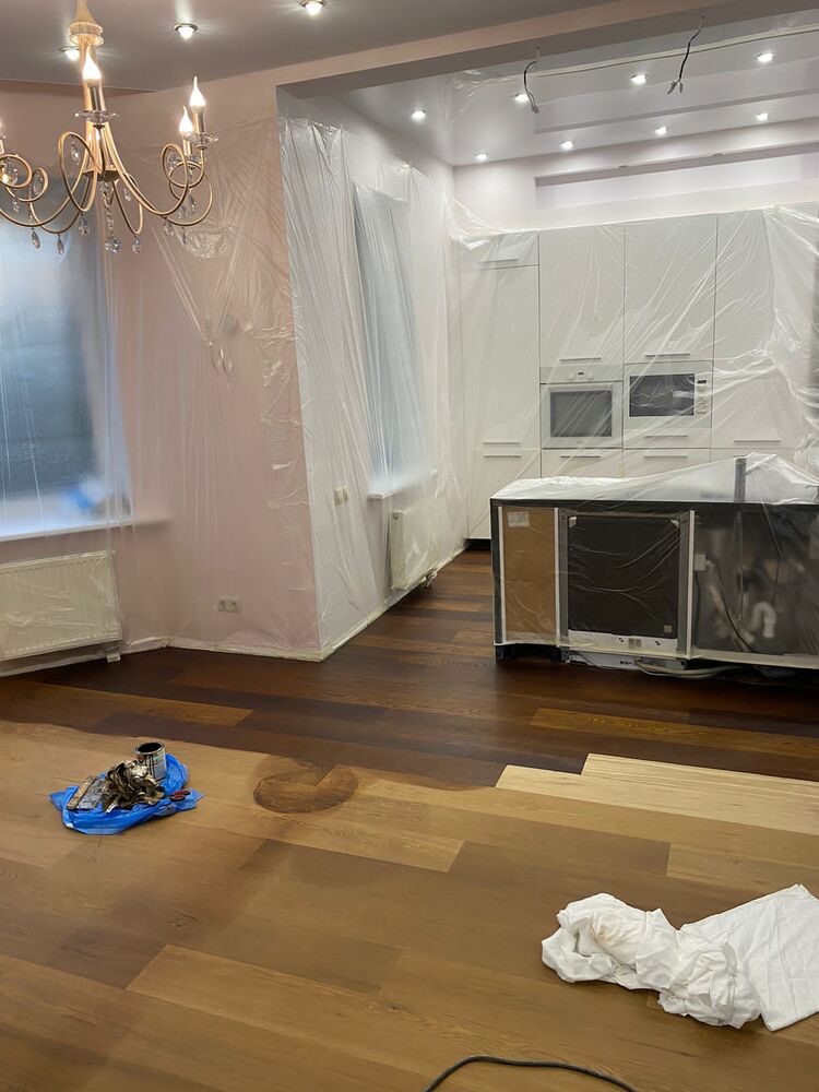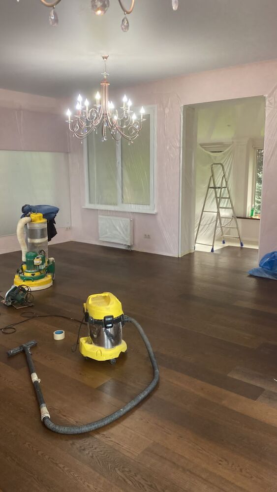 - покрытие паркета маслом с твердым воском Berger Hardoil в 3 слоя.