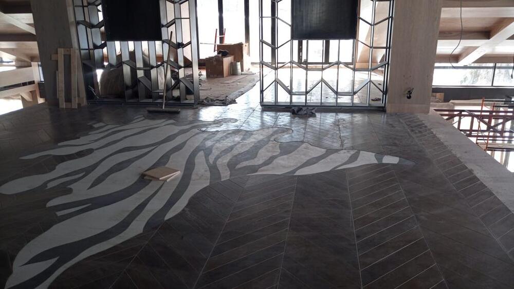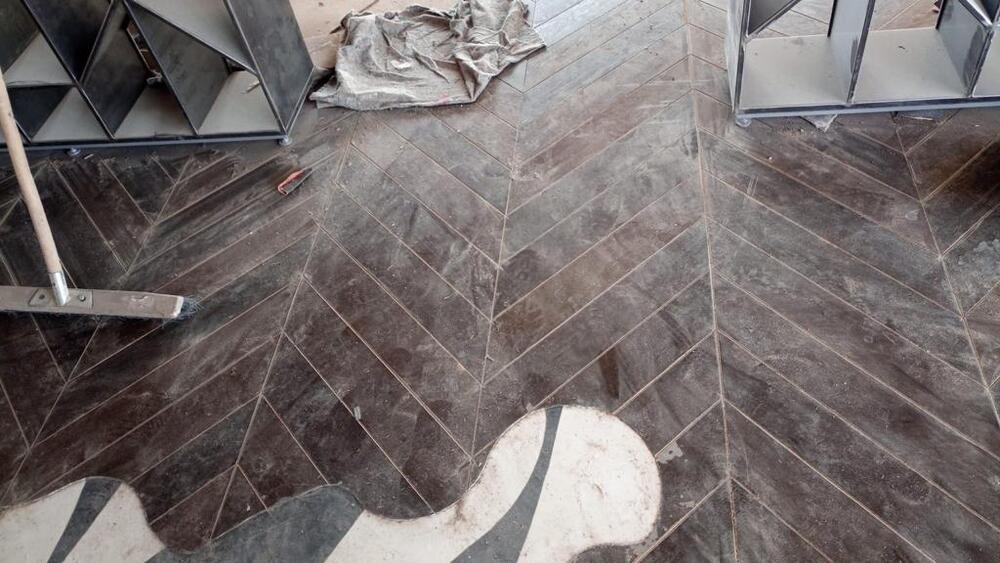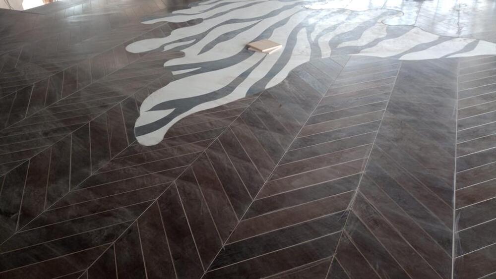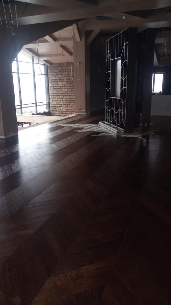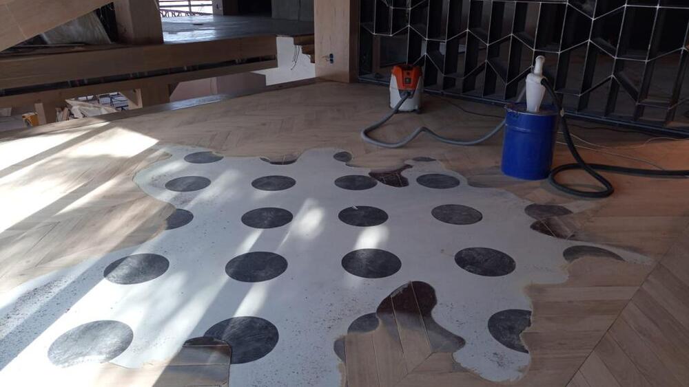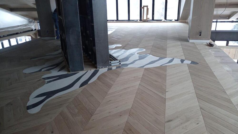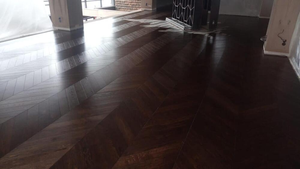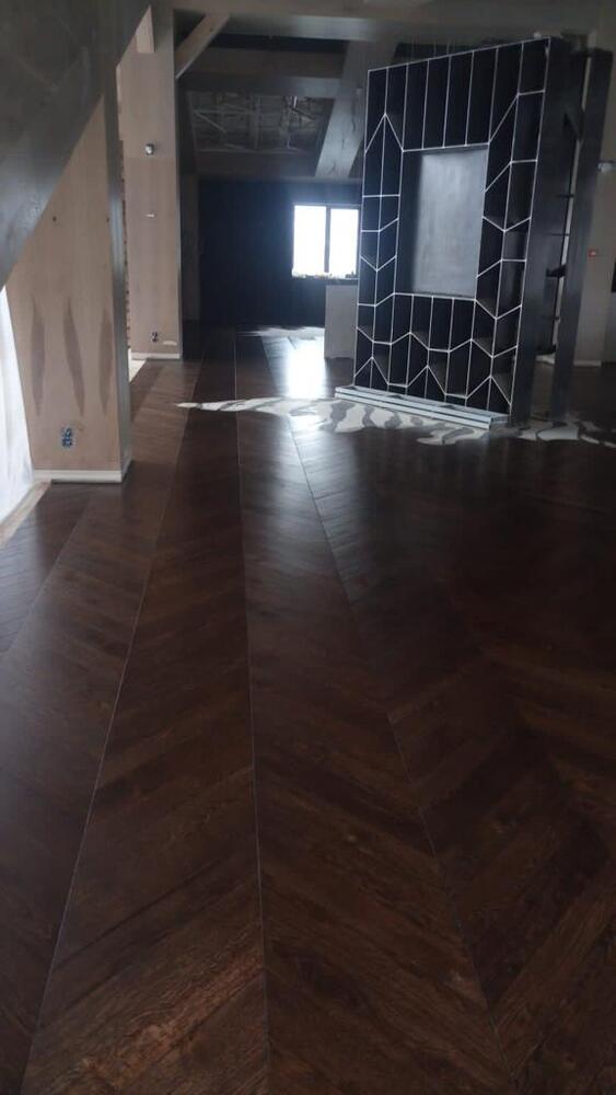 - Сделали перешлифовку инженерной доски, уложенной рисунком «французская елка»,