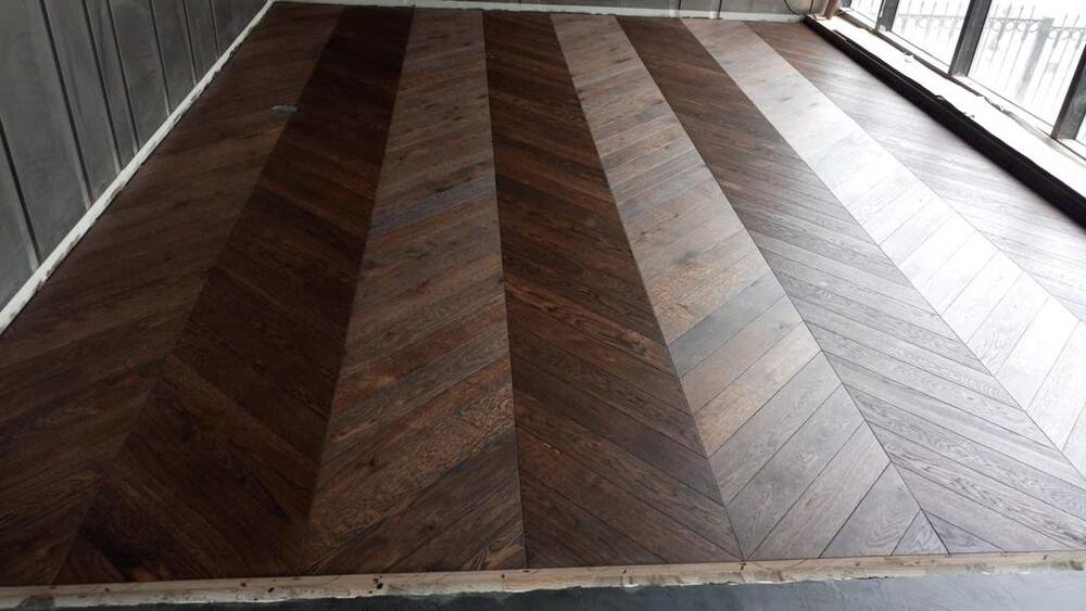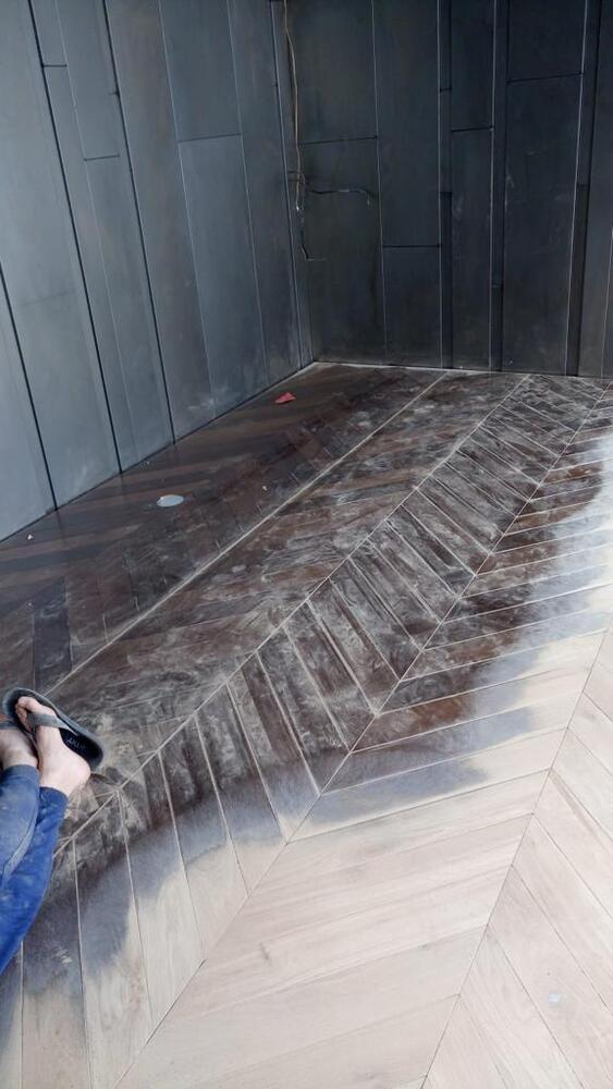 - Затонировали паркет в заданный цвет цветным маслом Berger BaseOil,