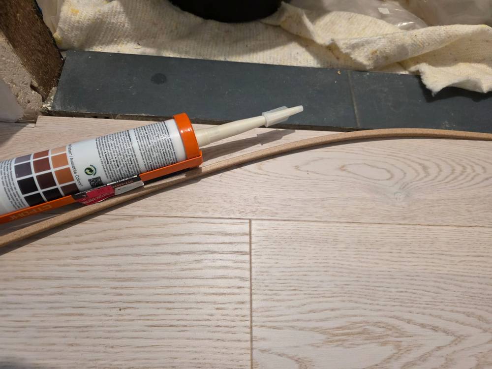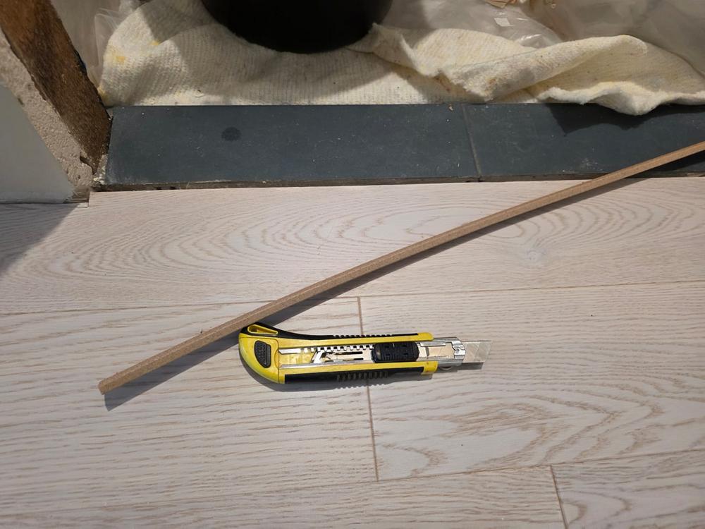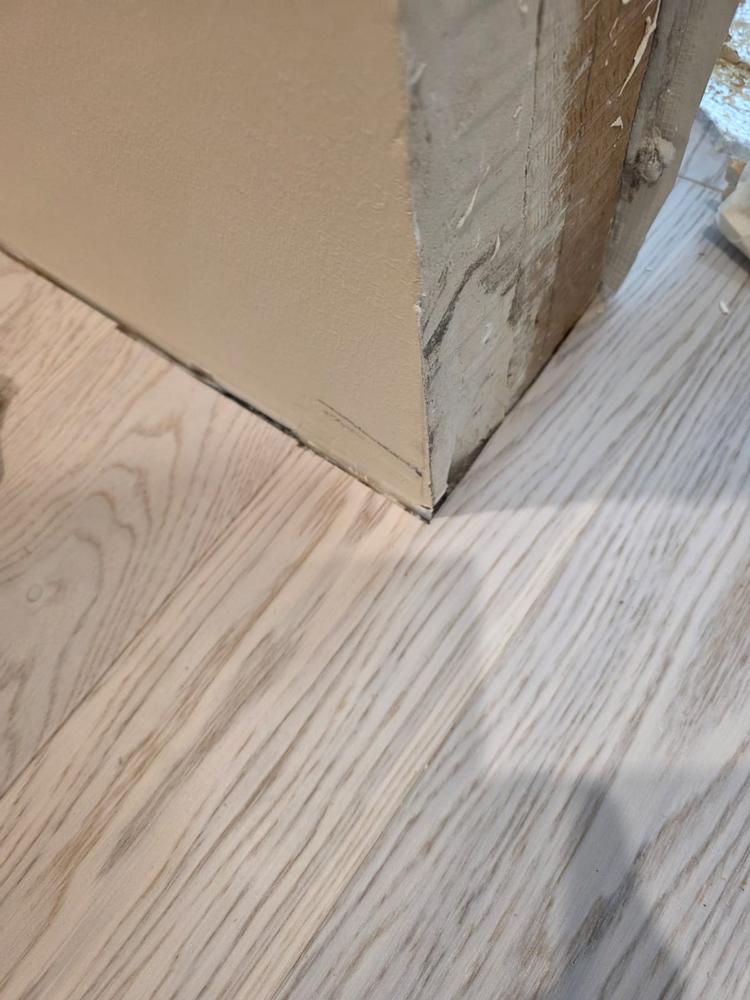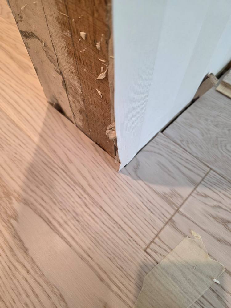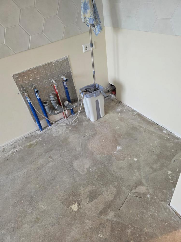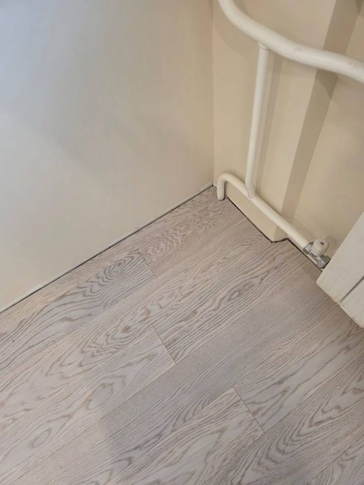 После демонтажа паркета выполнили оценку качества основания на прочность, ровность, влажность и т.д. Вероятно, паркет укладывали на еще не высохшее основание в пределах 3,8%: спустя год оно оставалось ещё влажным, так как доска лежала на подложке типа Tuplex, которая работает и как гидроизоляция. Было принято решение загрунтовать основание и приклеить подложку мультомоль на клей Venko 2 KPU (для компенсации высоты с примыканиями к плитке).