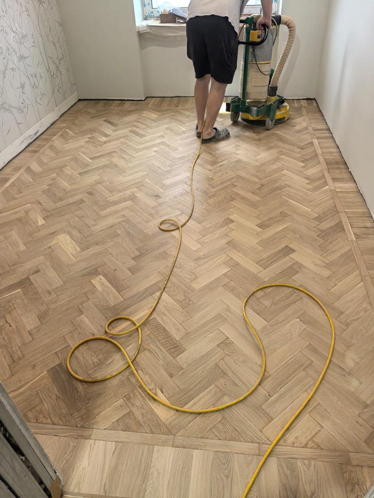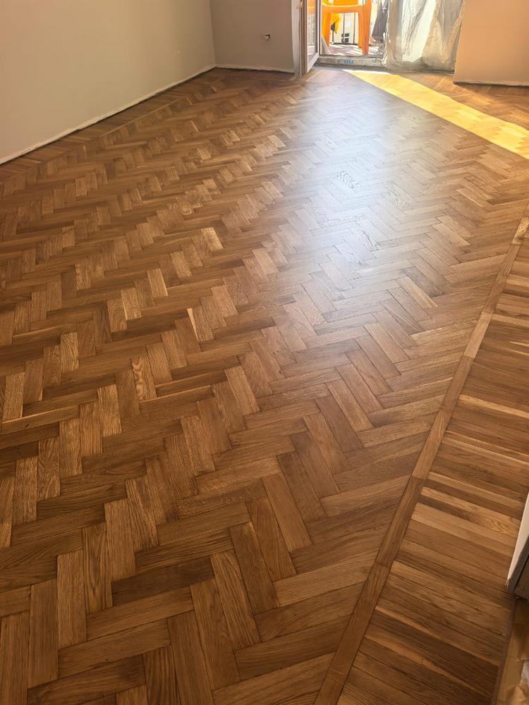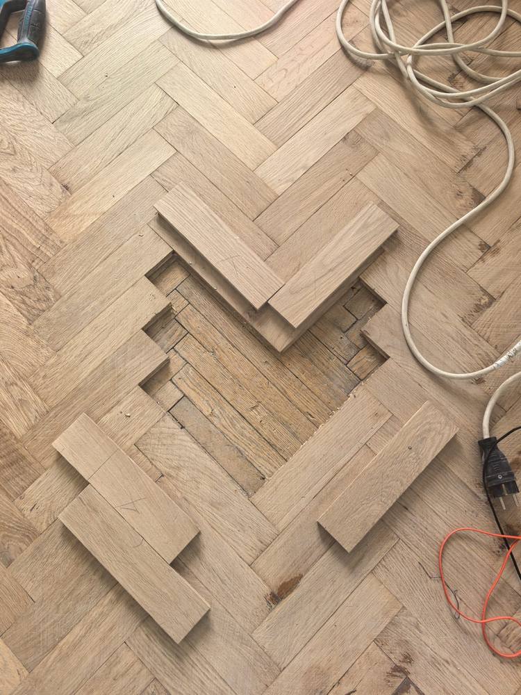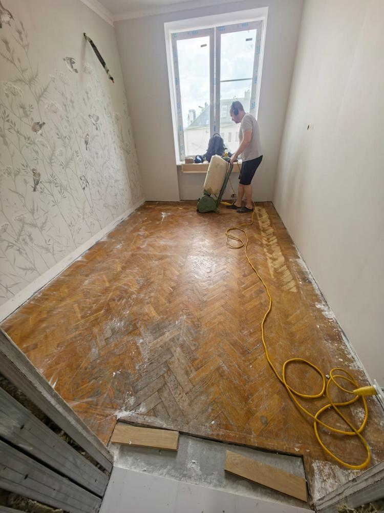 Мастера компании «Вернисаж» выполнили ремонт штучного паркета на объекте в Ермолаевском переулке в Москве.