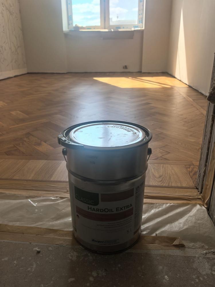 - покрытие паркета маслом с твердым воском Berger Hard Oil Extra в 3 слоя