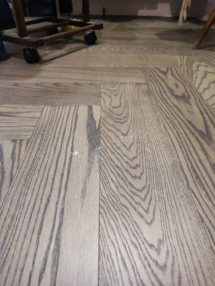 Мастера компании «Вернисаж» выполнили реставрацию царапины на паркете на объекте во 2-м Полевом переулке в Москве. Царапина осталась от неаккуратного обращения с мебелью.