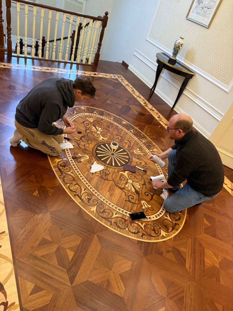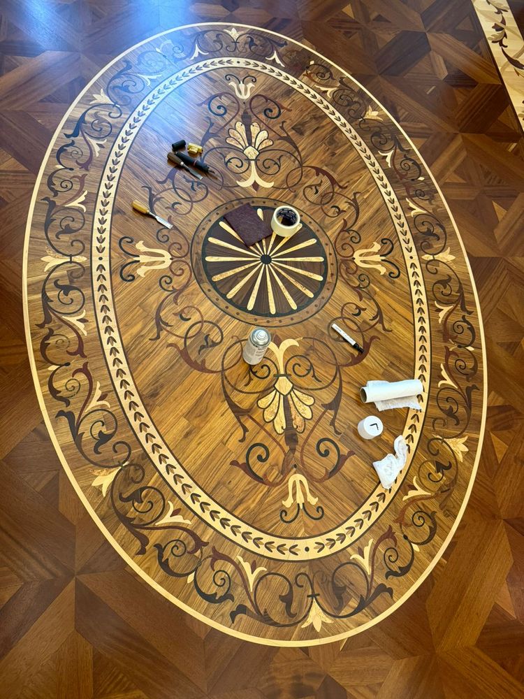 Мастера компании «Вернисаж» выполнили реставрацию художественного паркета в частном доме в КП «Белый Берег» в Москве.