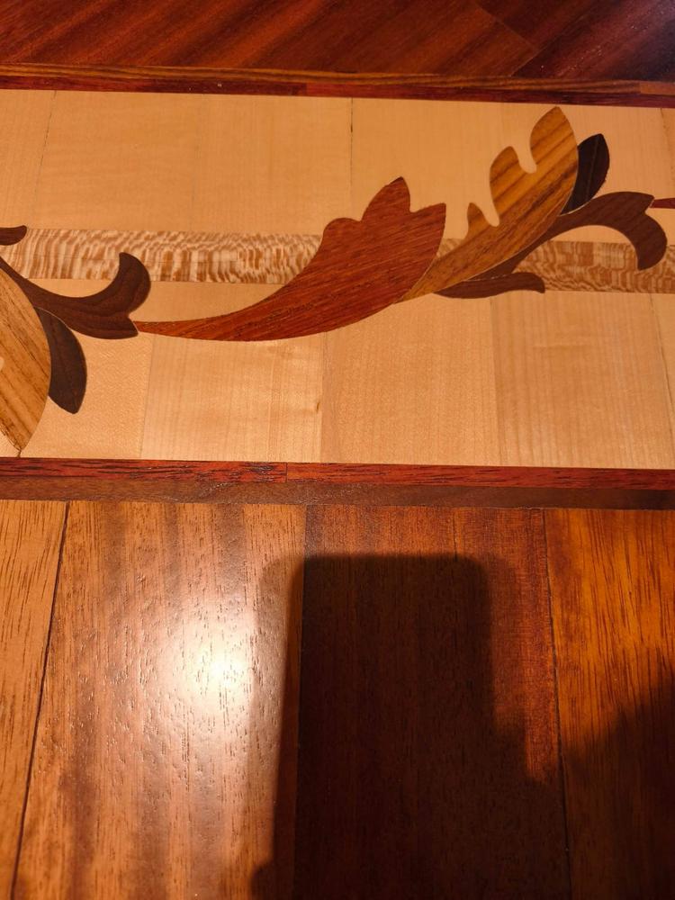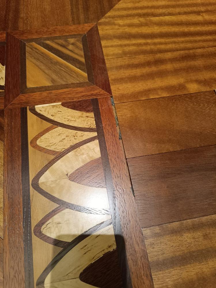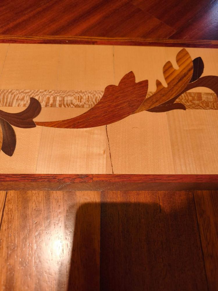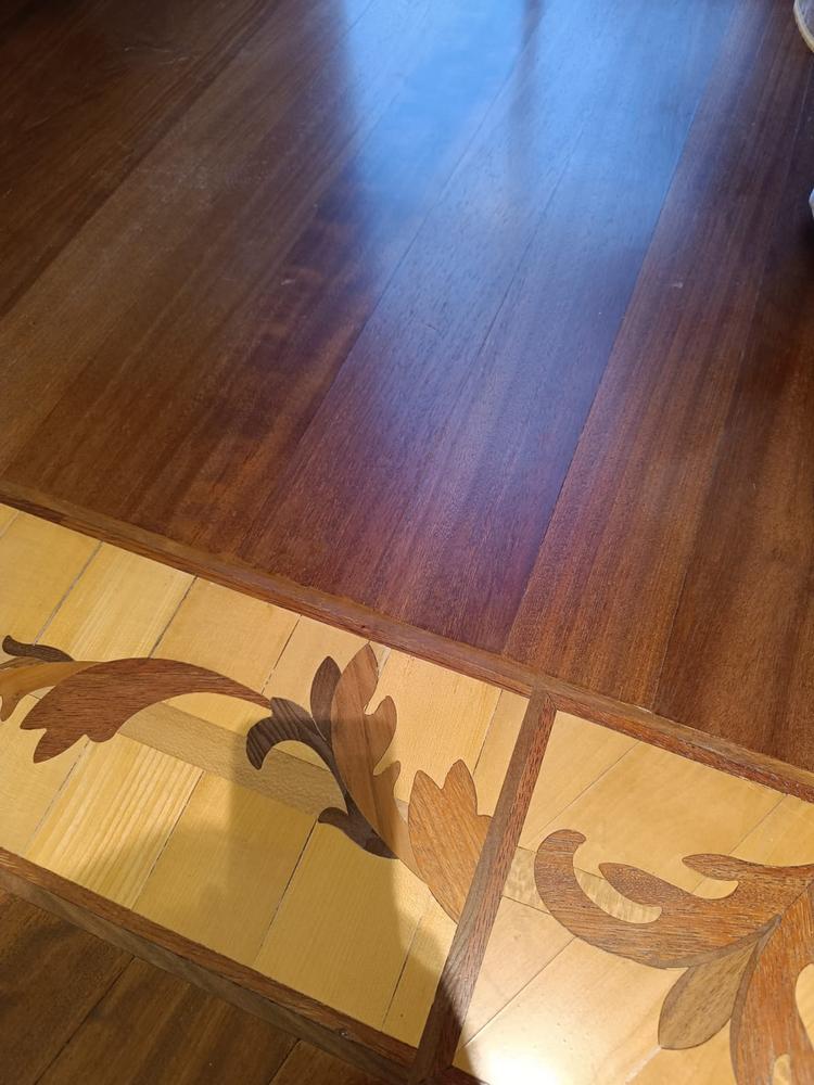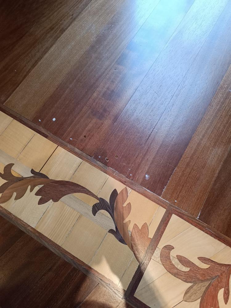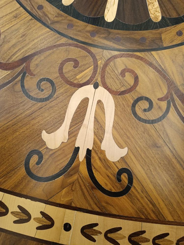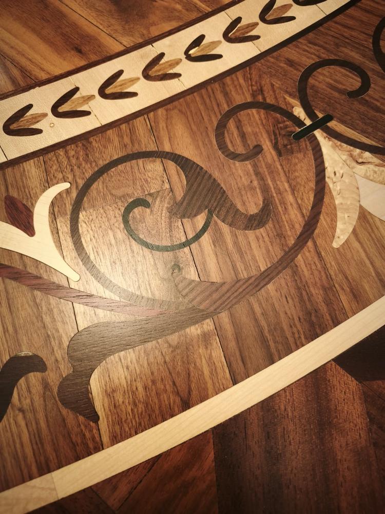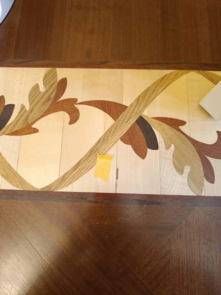 Заказчик купил дом с паркетом в художественном исполнении. Паркет производства компании «Ковчег» сохранился достойно, но в доме много лет никто не жил, и появились дефекты разного характера, в основном щели, проломы, коробление краев элементов из-за грубого климата в доме. После оценки нашими специалистами было принято решение уйти от перешлифовки с дальнейшим покрытием в пользу локальной реставрации разного вида повреждений. Повреждения паркета исправляли с применением инъекционного клея Venko и реставрационных материалов Novoryt.